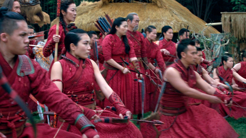 Мишель Йео (кстати, эта прекрасная актриса играла одну из главных ролей в "Крадущемся тигре, затаившемся драконе" и в "Безумно богатых азиатах") появляется здесь только во время визита главных героев в деревню Та Ло (это где-то на полуторачасовой отметке), но она сразу, что называется, крадет шоу у других персонажей: Мишель Йео впечатляет и, как всегда, прекрасно играет свою роль.