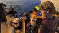 Поэтому Шрэк берет своих неразлучных спутников - Осла (Эдди Мерфи) и Кота в сапогах (Антонио Бандерас), садится на корабль и отправляется в Вустершир, оставив дома Фиону на попечение мамы-королевы (Джули Эндрюс), косовитой Рапунцель, засыпающей Спящей царевны, яростно надраивающей все вокруг Золушки и прочих достойных девиц.