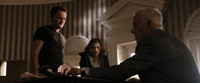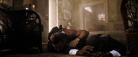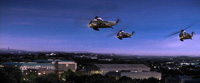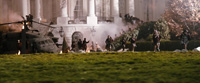 Со спецэффектами тут как раз все скромнее, чем обычно, - Эммерих больше фокусируется на метаниях Джона по закоулкам и потайным тоннелям Белого дома, нежели на уничтожении какого-нибудь небольшого городка вроде Нью-Йорка или какой-нибудь небольшой планетки вроде Земли. Но все-таки тут есть на что посмотреть, кроме сладостных картин разрушения Белого дома. Боевые вертолеты, которые трогательно летают в метре от земли, боевая машина президента, которая носится по лужайкам, портя газон, а за ней охотятся два хищных "Субурбана". Всякие ракетные установки, перестрелки из тяжелого и легкого вооружения, взрывы и пожары - в общем, врать не буду, какие-то спецэффекты явно присутствуют.