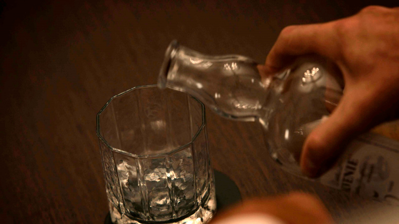 пьет очень дорогой виски, но при этом никогда не пьянеет.