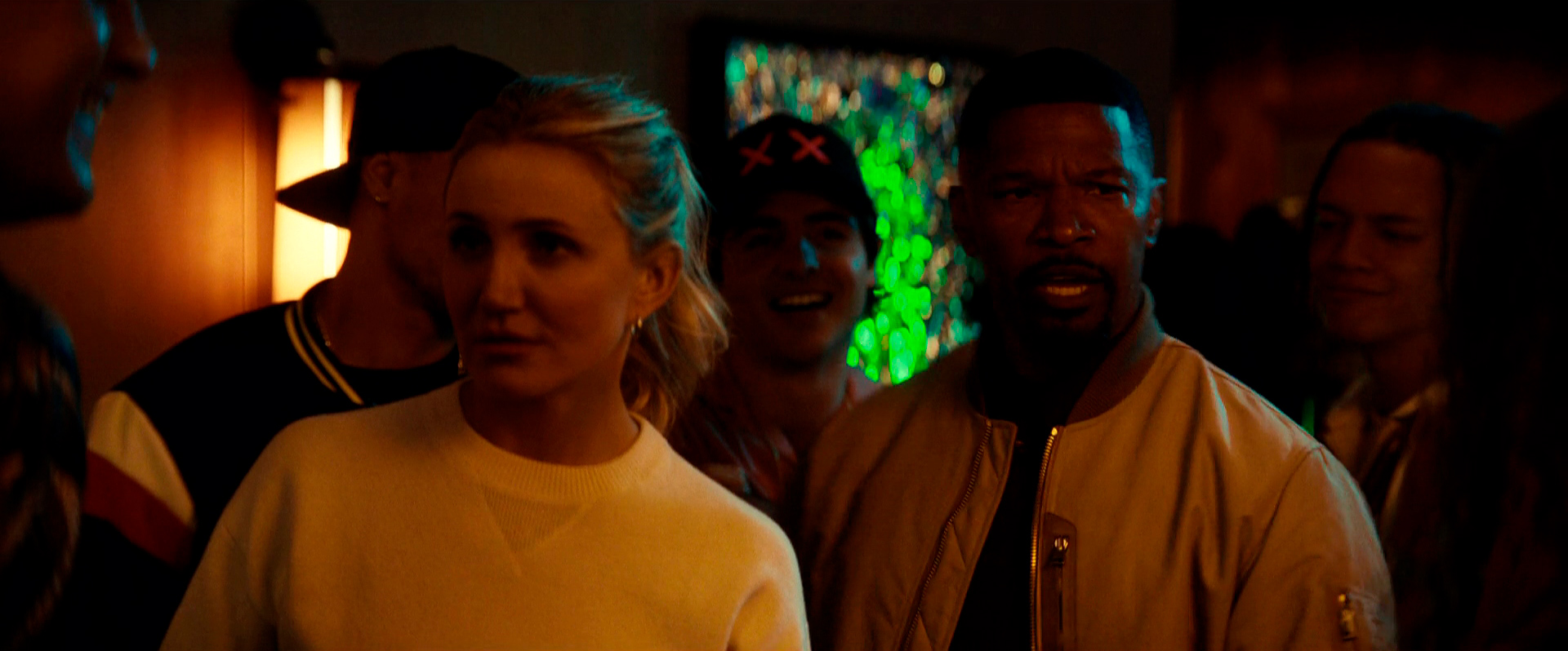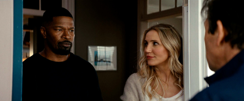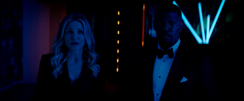 Кэмерон Диас явно с удовольствием снимается в этом боевичке, в свои пятьдесят два года демонстрирует отличную физическую форму, и мы с Бубликом счастливы сказать, что ее лицо не превратилось в обколотую ботоксом застывшую маску, что наблюдается у некоторых других актрис (мы не будем указывать на Николь Кидман и Сандру Буллок). Так что у Кэмерон все нормально с мимикой, и она на пару с Джейми Фоксом и юморит вовсю, и отвешивает крупных люлей всяким негодяйским мужчинам, говорящим на каком-то явно славянском языке, который мы с Бубликом не смогли идентифицировать.