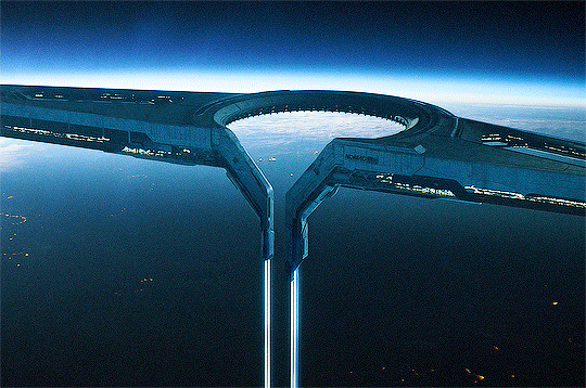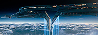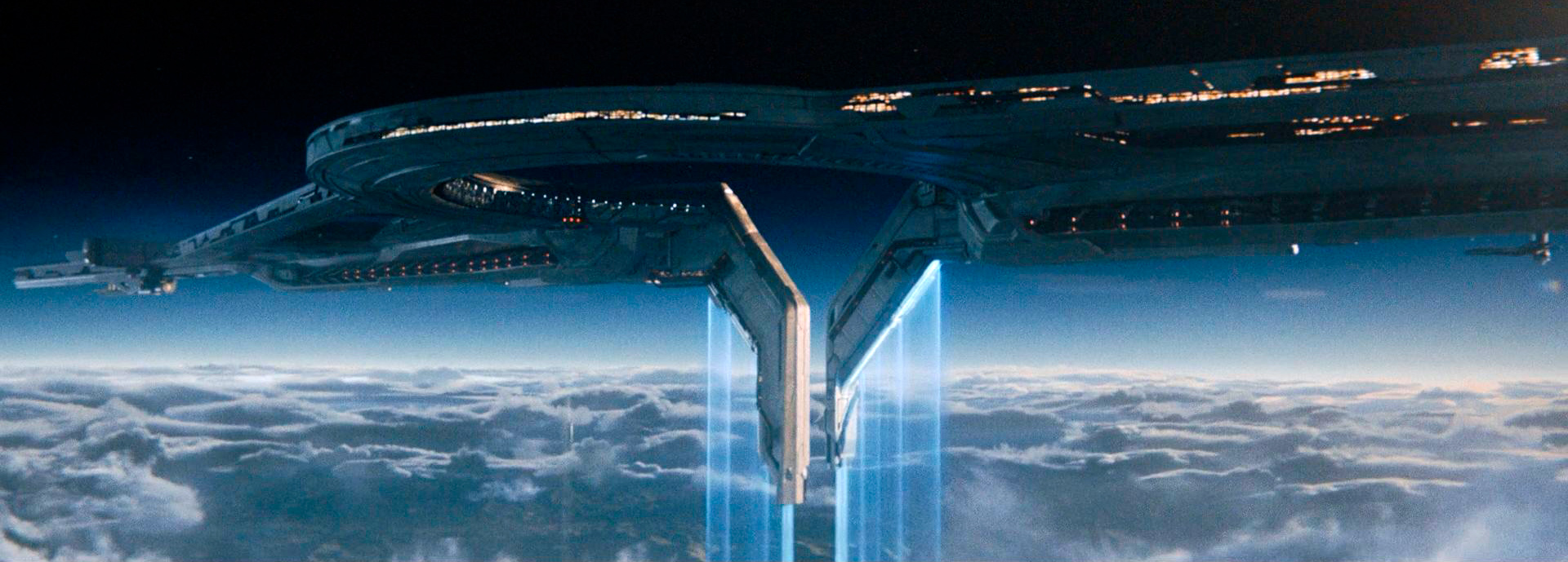 Космическая. В смысле — заатмосферная. Это из-за гигантских размеров в первых эпизодах кажется, что она низко над землёй плывёт.