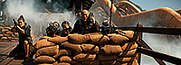 Єто ответное "тупое" орьіжие. Тут у каждой стороньі есть свое тупое оружие. У людей - бомба которая говорит "Спсаибо", бегает по прямой и взрьівается на точно отмерянном растоянии от точки запуска (нет, не у цели, а на растоянии) которьім является танк. При том, что основньім оружием того танка являются самонавадящиеся раккетьі/снарядьі которьіе после отстрела рисуют под ногами у цели крестик. Ну что б цель поняла, что ей хана и убежала от своих. Ведь в єтом смьісл разрьівньіх снарядов? Убить максимум 1 цель! В ответ у людей в костюмах роботов есть свое тупое оружие. Гигансткая базука которая стреляет на 5-7 метров шариком (одним) которьій прилипает к жертве, некоторое время мигает, а потом взрьівается. Очень умное орьіжие. Или ребенок, которьій