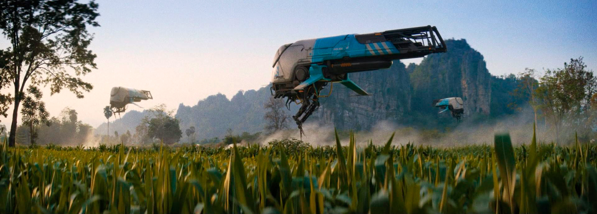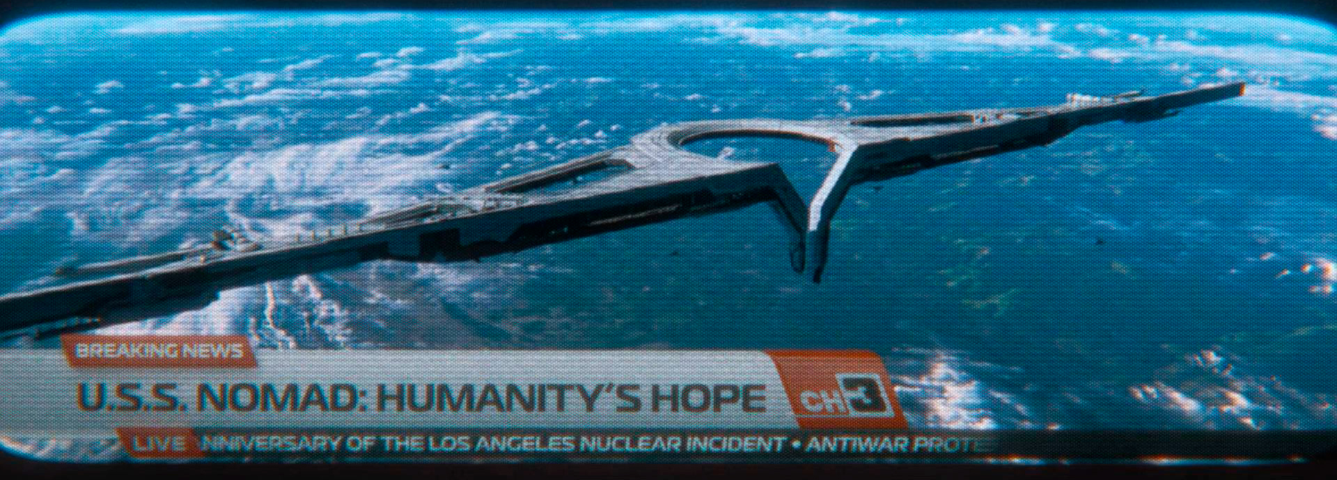 Одновременно с этим, с точки зрения спецэффектов хорошо сделаны эти имитаторы - человекообразные роботы, у которых только задняя часть головы показывает их искусственное происхождение, также вот эта высотная аэрокосмическая платформа NOMAD (North American Orbital Mobile Aerospace Defense) - она производит очень серьезное впечатление.