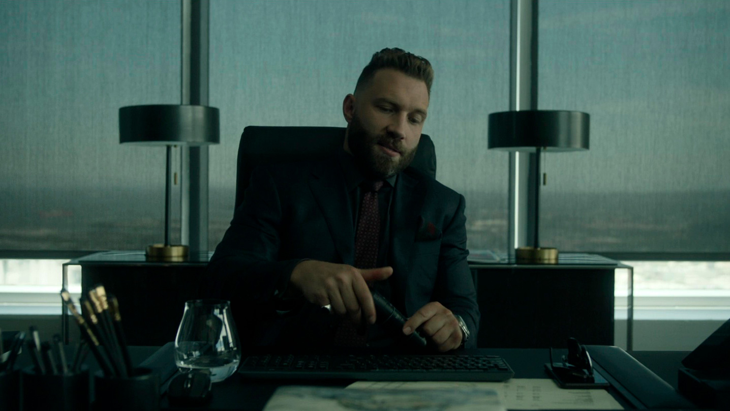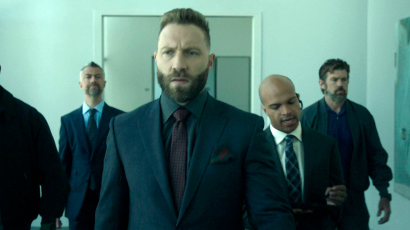 Также упомяну Джая Кортни, который здесь сыграл Стива Хорна, директора явно негодяйской компании Capstone Industries. Кортни раскачался почти до статей Дуэйна Джонсона, однако директор здесь у него получился очень колоритный и харизматичный, причем совсем не своими физическими кондициями. Мне даже показалось, что Кортни с грехом пополам научился более или менее что-то играть, а ведь раньше он такого впечатления не производил.