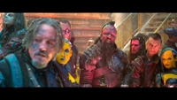 При этом масса неоднозначных этически моментов - вроде ввели разрушителей как персонажей, которым можно сопереживать (они героически обороняли планету в первой части, да и Йонду и Сталлоне с компанией из них), и тут - бац, целая сцена, где их истребляют, причем подано всё так, что от истребления надо получать удовольствие. Понятное дело, что истребляют как бы "плохих" разрушителей, хотя во вселенной СГ все типы неооднозначные, сами члены команды Стражей, те же Гаморра и Небула не белые и пушистые, а "плохие" разрушители никакого из мирных жителей на экране не убивали, то есть это была вообще внутренняя разборка, и подавать массовое убийство как веселье... В общем момент чудовищно, чудовищно неоднозначный.