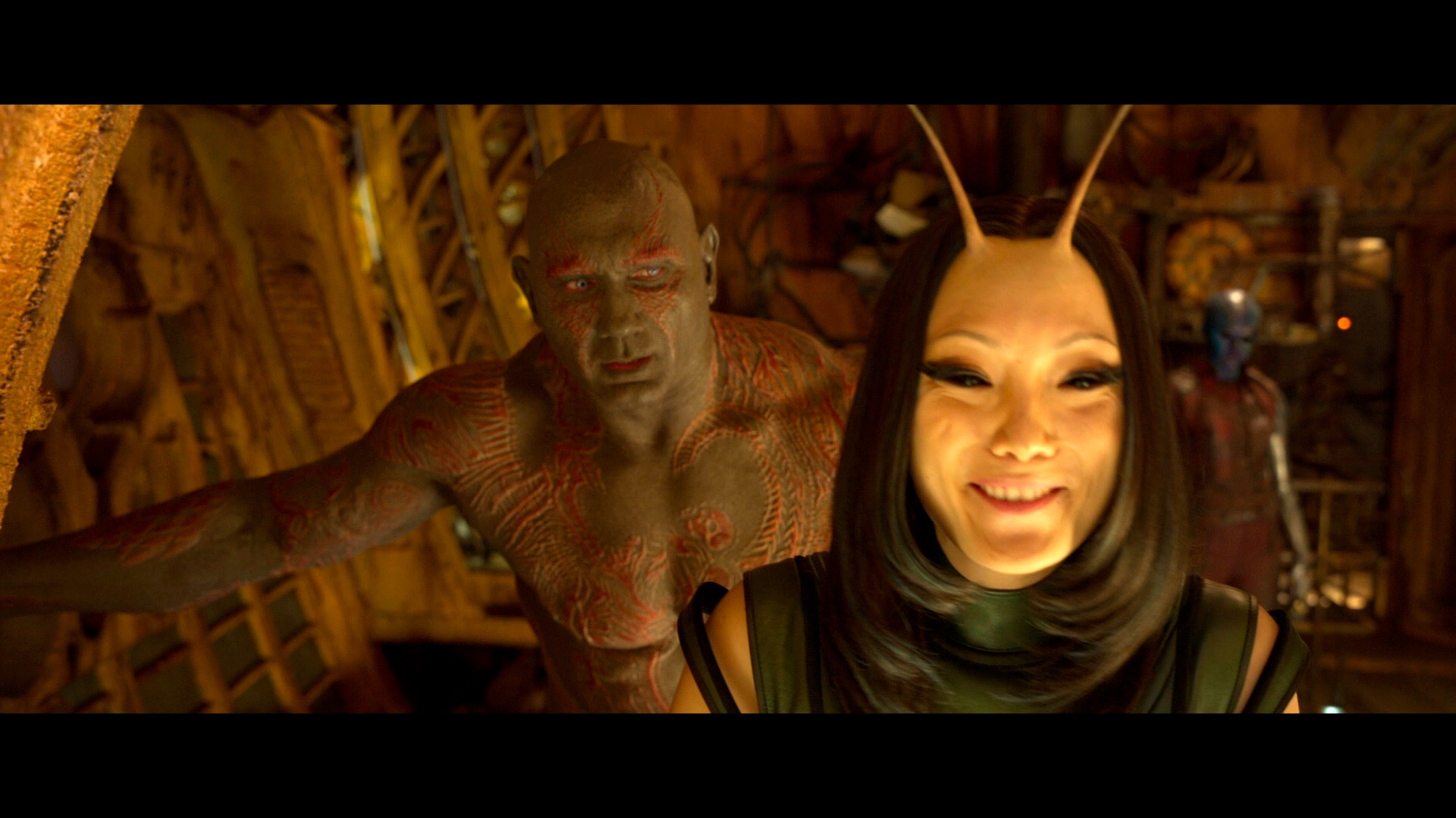 Дракс тут очень забавно общался с совершенно новым персонажем по имени Мантис (Пом Клементьефф) - прикольная получилась парочка.