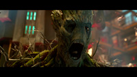 Узнав о награде, за Куиллом также начали охоту космические бродяги: боевой енот Ракета (Брэдли Купер) и его подручный - древообразное существо по имени Грут (Вин Дизель).