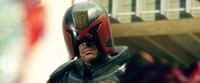 Дредда здесь играет Карл Урбан. Весь фильм его голову закрывает защитный шлем, в котором видна только нижняя часть лица, поэтому Урбану приходится играть сурово искривленными вниз губами (явно под Сталлоне), голосом и брутальной спиной. Надо сказать, у него это получается, хотя Урбан это, Субурбан или Машков - зрители черта с два разберут. Но Урбан молодец. Столько времени кривить губы под Сталлоне, у которого просто такая родовая травма, - это надо уметь.