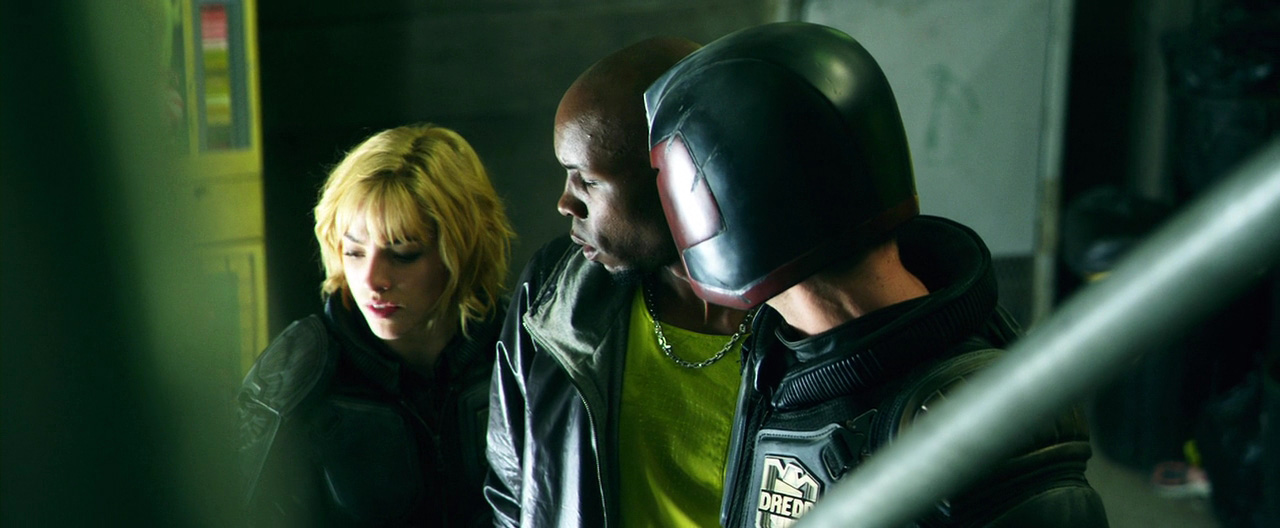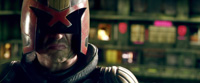 Судья Дредд (Карл Урбан) - один из таких Судей. Он делает свою нелегкую работу со скорбным выражением на почти закрытом защитным шлемом лице, однако видно, что работа ему по душе. Несмотря на суровый характер своих занятий, судья Дредд в душе слегка поэт. Ему нравится смотреть, как очередь из его пистолета-пулемета вышибает мозги из преступника, он обожает следить за траекторией полета тела негодяя сквозь лестничный пролет, он наслаждается адреналиновой погоней за микроавтобусиком, полным ублюдков всех мастей, которые при этом поливают его свинцовым дождем, как бы намекая, что Судье здесь не рады.
