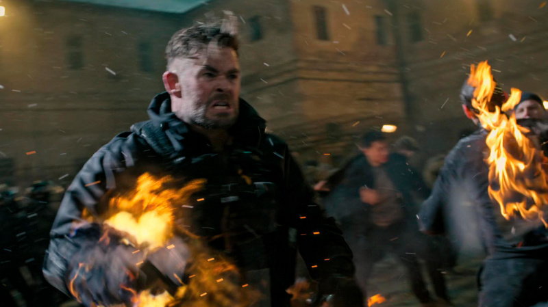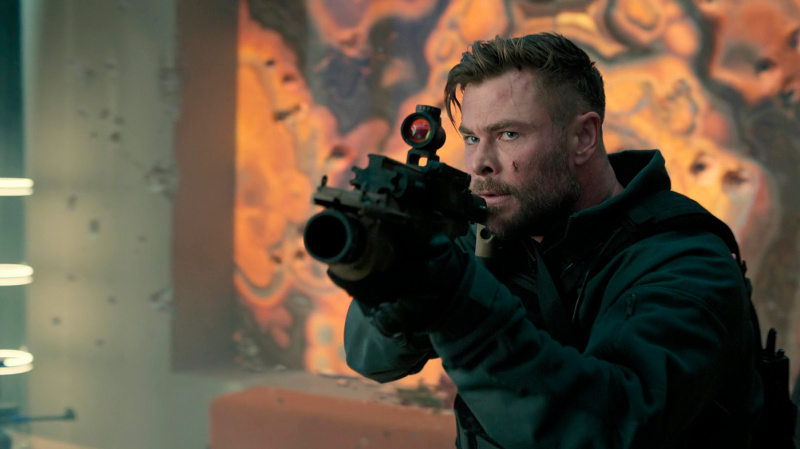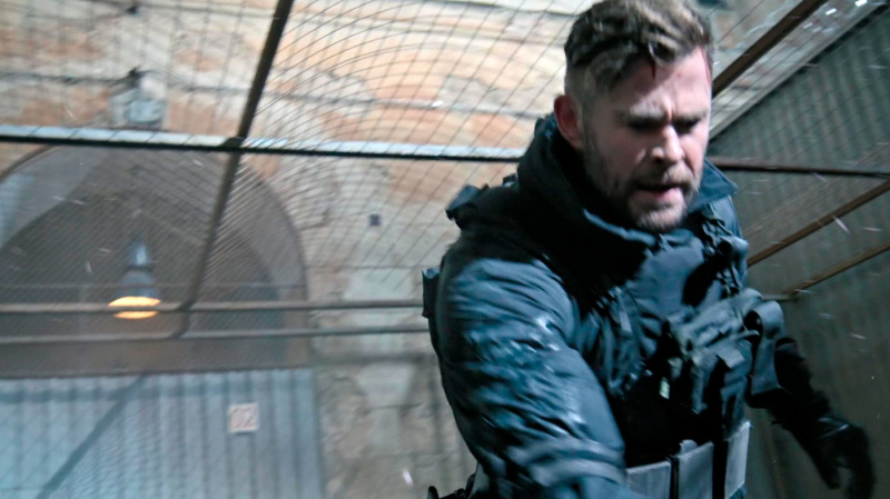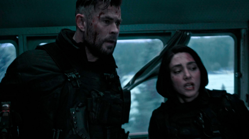 Оригинальное название первого фильма "Extraction" означает "эвакуация", второй фильм, долго не думая, назвали "Extraction II", ну и дело понеслось: в режиссерское кресло сел все тот же Сэм Харгрейв, сценарий накалякали все те же Джо Руссо и Энтони Руссо, которые намного больше известны как режиссеры - собственно, они ставили "Первый мститель: Другая война", "Первый мститель: Противостояние", "Мстители: Война бесконечности" и "Мстители: Финал", а среди актеров из первого фильма остались, понятное дело, сам Крис Хэмсуорт и Голшифте Фарахани, которая в первом фильме была его работодателем, а в сиквеле непонятно зачем вместе с братом поперлась с Тайлером выполнять этот безнадежный заказ, к которому она вообще никакого отношения не имеет.