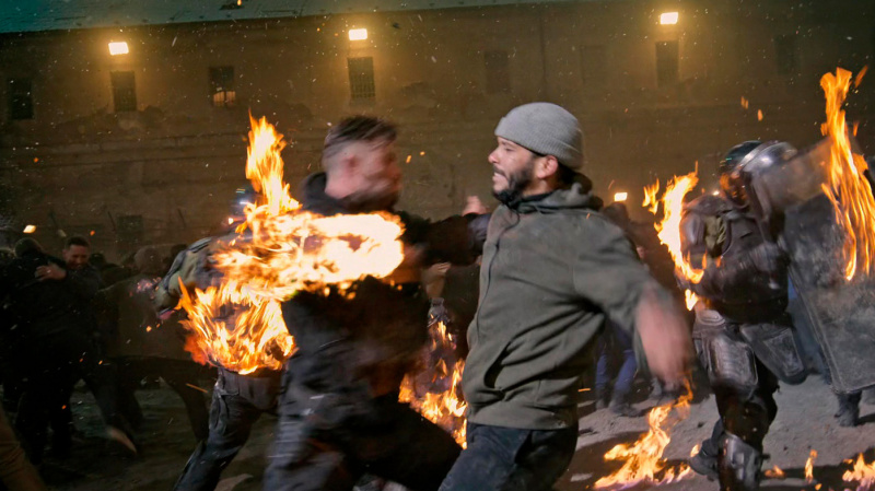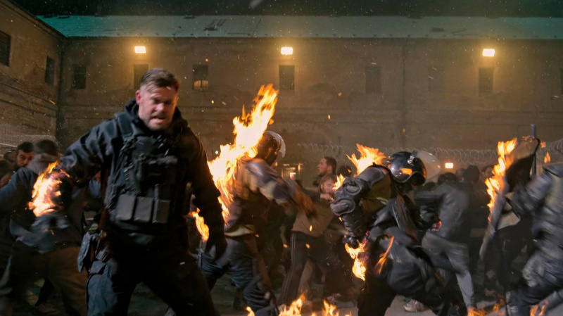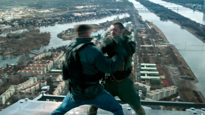 Поразительно здорово сделанная драка в тюрьме, снятая одним проходом камеры, длящаяся 14 минут, ради которой Криса Хемсуорта реально несколько раз поджигали (в него там по сюжету кидают бутылку с зажигательной смесью) - режиссер в интервью ее назвал "самой безумной дракой в истории кино", и Хемсуорт там все делал без дублеров. Побег на поезде и сражение в поезде. Ну и потом длительное и круто сделанное рубилово в этом высотном здании в Вене - это все прямо-таки впечатляло!