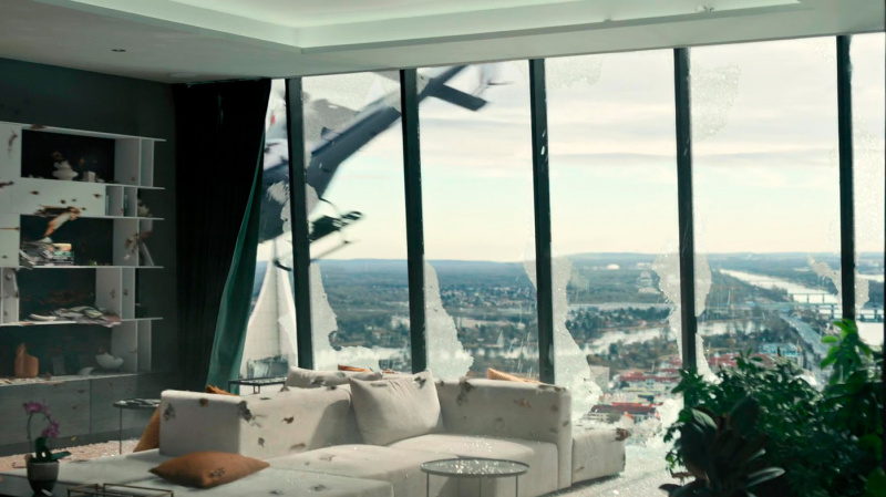 А уж когда главгад, постояв на крыше, с досадой проводил взглядом вертолёт, а потом уже показан идущим по улице к машине, укрывшись капюшоном — это вообще ржака. Он ещё на крыше был, а внизу уже должна была стоять вся австрийская армия в несколько слоёв.