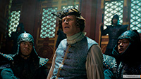 В результате получился целый компот из фильмов про тюрьму, буффонады про Москву в стиле камеди-клаба (Павел Воля своего Меншикова изображает как в типичном комедиклабовском скетче, разве что нацепил костюм графа из рекламы сухариков), пиратов Карибского моря в эпизоде поездки в Китай, ну и традиционной такой китайской сказочки про грустного дракона, у которого связали реснички, и принцессу, место которой заняла самозванка. Причем держать народ в подчинении ведьме помогают совершенно стимпанковские персонажи: один издает жуткие звуки, другой покрыт броней и стрекочет молниями, а третий умеет напускать туману и телепортироваться.