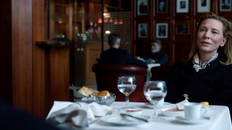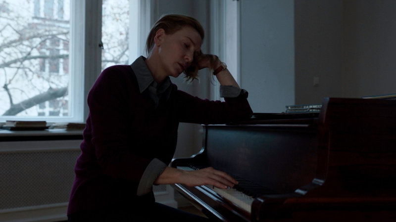 Как режиссер относится к своей главной героине? Скажем так, он ее изучает. Как и с кем она говорит, как она действует в тех или иных обстоятельствах. Она может высказывать очень интересные мысли, связанные с музыкой и ее интерпретацией, как в сценах репетиций, она может давить на людей, как в очень яркой сцене обучения студентов в Джульярде, где Лидия как раз и рассуждает о культуре отмены, она нередко обманывает людей, она временами демонстрирует свои очень неприятные черты характера, как, например, в сцене в школе, где она угрожает маленькой девочке, которая что-то там не поделила с приемной дочерью Лидии и Шэрон.
