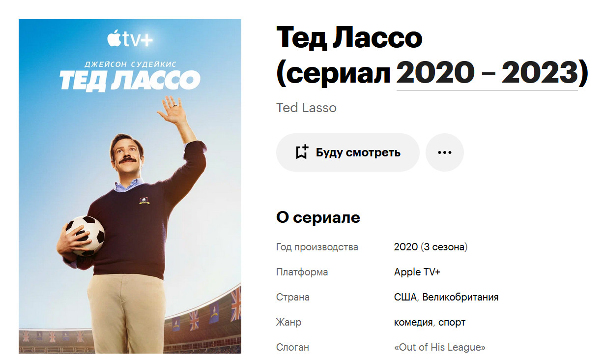 Первый сезон "Теда Лассо" был открытием 2020 года и прекрасной отдушиной для зрителей во время коронавирусного дурдома. Никто не верил в успех сериала об американце, ничего не понимающем в европейском футболе, который тем не менее на посту тренера английском команды добивается значительных успехов. Но оказалось, что этот сериал - не совсем про футбол, а Джейсону Судейкису удалось создать настолько обаятельный образ этого тренера, что сериал стал любимейшим у огромной зрительской аудитории и собрал целый ворох самых престижных кинематографических наград.