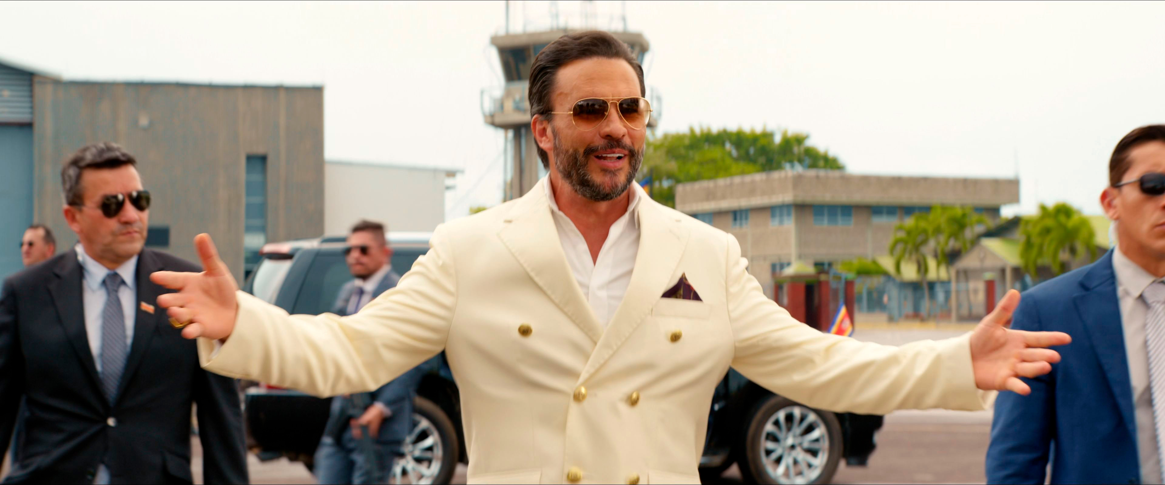 Есть такой президент Пальдонии Венегас (Хуан Пабло Раба), объясняет Ерл. Ну да-да, тот самый, которого мы тогда должны были убить по заказу правительства США, а он отдал приказ расстрелять отправленный на его уничтожение взвод. Где ты, снова напоминает Себастьян, повредил себе спину. Так вот, он никому не дает интервью, однако согласился дать интервью некоей Клейр Уеллигнтон, которая хочет стать Такером Карлсоном в юбке.