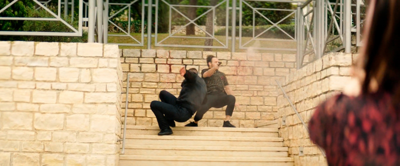 С боевичковой (мы помним, что это чистая пародия) точки зрения - скажем так, в рамках бюджета картины, в главных ролях которой заняты два вполне звездных актера с высокими гонорарами (да и Сальма Хайек тоже, знаете ли, хотя и не суперзвезда, но актриса вполне статусная) - все очень прилично: есть несколько эффектных гонок и перестрелок, есть шикарные итальянские локации (Портофино - это просто рай на Земле, да и потрясная Флоренция здесь тоже засветилась), и если накал спецэффектов до недавнего "Форсажа 256" здесь не дотягивает (что и хорошо, потому что спецэффекты не такие мультяшные, как там), то оно и понятно, ведь у девятого "Форсажа" бюджет - $200 миллионов, то есть в три раза больше.