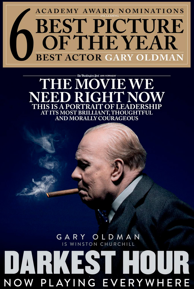 Фильм очень понравился, да. К нему есть определенные претензии, но посмотрел с удовольствием. Главное украшение картины - это, конечно же, Гари Олдман, исполнивший роль Уинстона Черчилля. Точнее, главное украшение - Олдман и мастерство гримеров, недаром из шести номинаций на "Оскар" картина выиграла две: "Лучшая мужская роль" и "Лучший грим и прически".