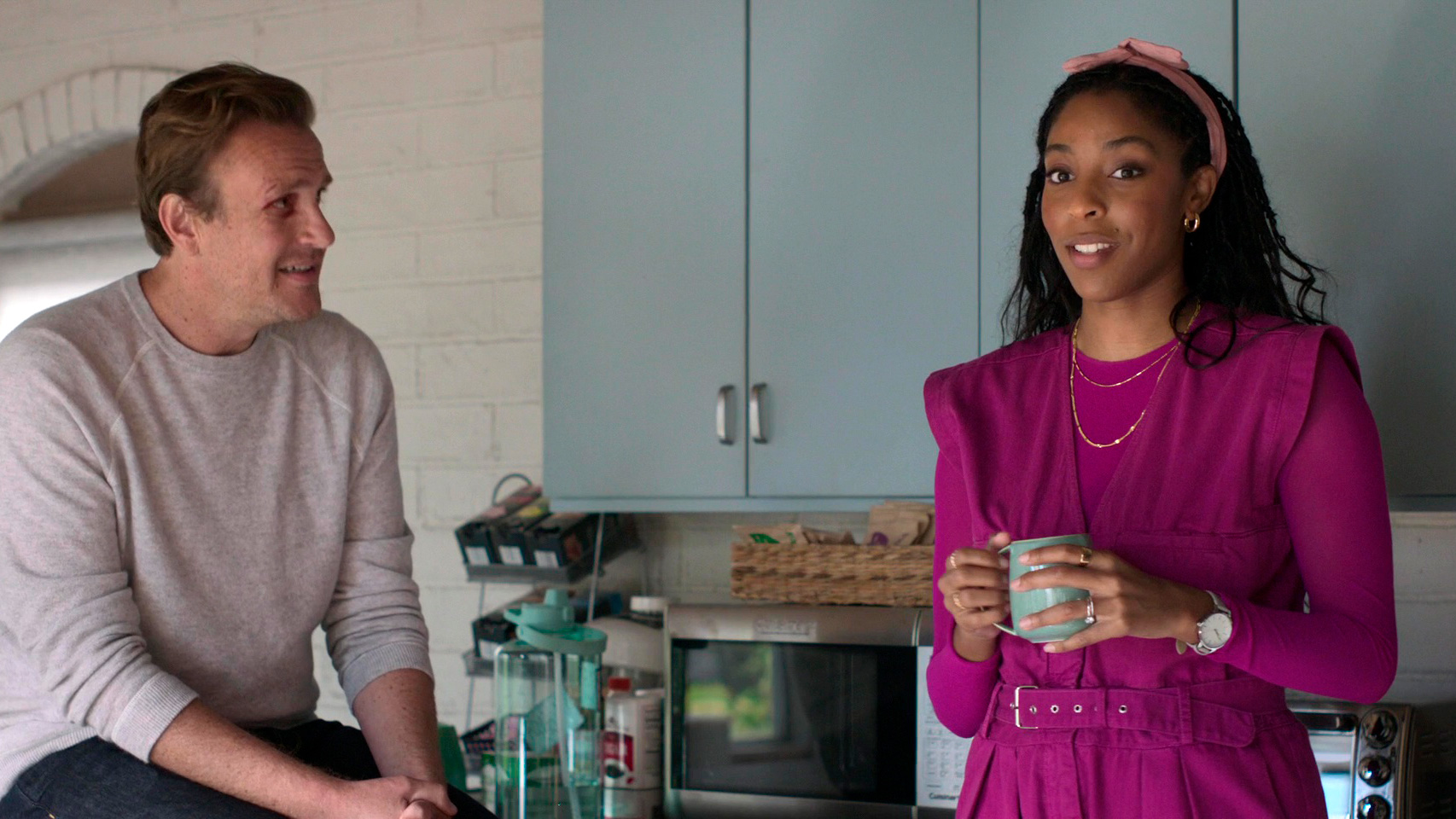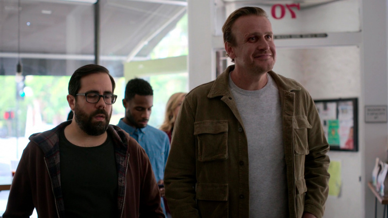 Джейсон Сигел в роли Джимми - ну, скажем так, неплох. Но на главного героя (как, например, Стив Карелл в "Офисе" или Джейсон Судейкис в "Теде Лассо") не тянет совершенно. Хотя он вроде бы главный герой. Но просто Сигел - актер предельно одноплановый, он может разыгрывать только один и тот же типаж, и харизмы ему, конечно, не хватает. Ну да, обаятельный, временами нелепый, временами совершает поразительно дурацкие поступки, но он добрый и незлобивый, и за это ему все всё прощают. И как главный герой - совершенно, на мой взгляд, никак не выдающийся.