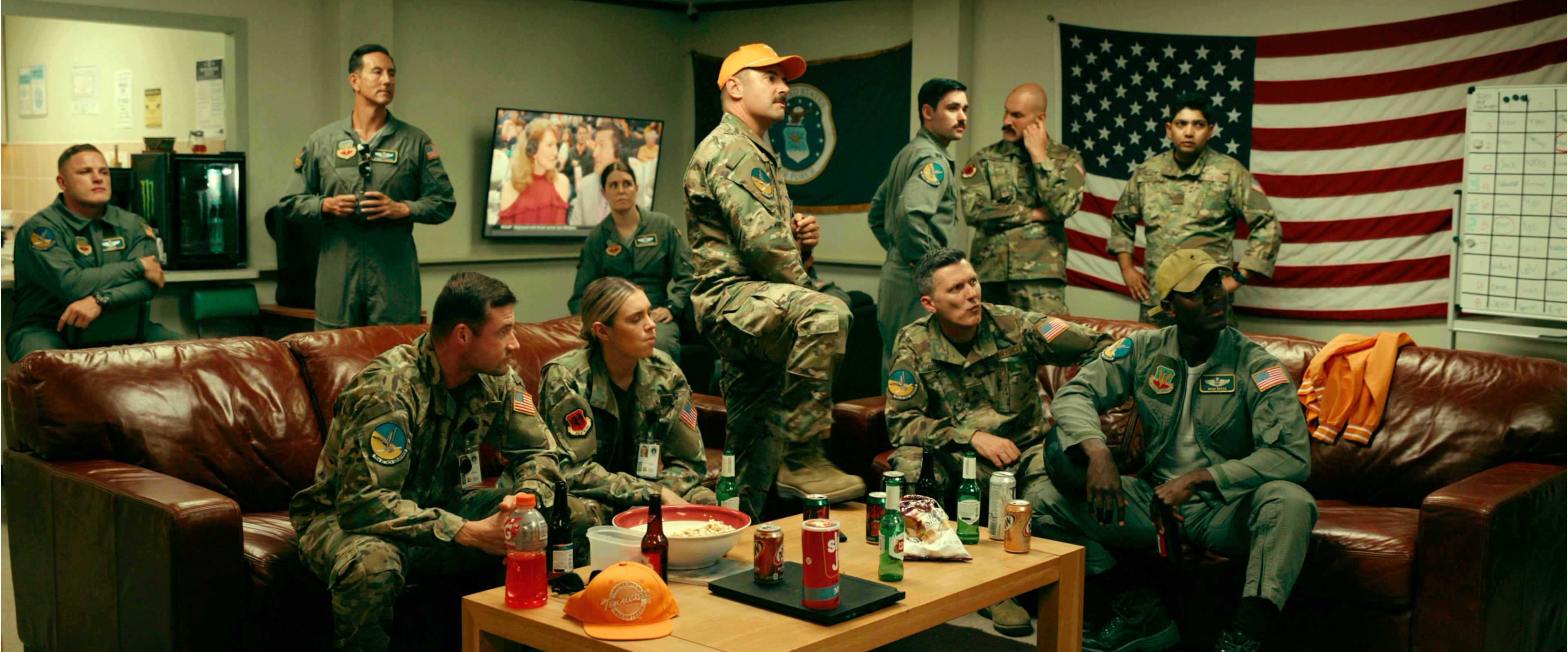 У опытного оператора дрона жена должна рожать, и она ему может позвонить только на допотопный проводной телефон, который висит в комнате, где военные во главе с полковником дуют пиво и смотрят баскетбол на полной громкости телевизора - отличная идея, сэр, есть! У оператора есть напарница - симпатичная афроамериканка, с которой у него настолько трогательные отношения, что она его хочет попросить о чем-то очень личном - проверено, имеется.