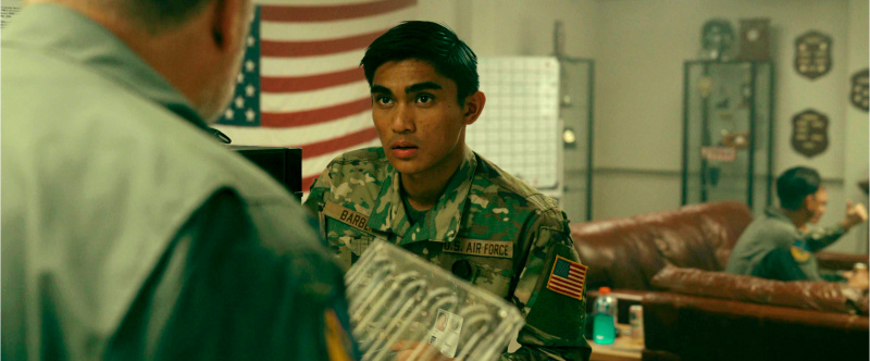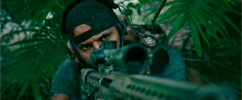 Впрочем, когда это все смотришь, то на шаблонность и временами идиотичность сценария особого внимания не обращаешь. Ну, бегает где-то по филиппинским джунглям необстрелянный, но боевой американский парень, а где-то высоко-высоко летает необстрелянный, но боевой американский дрон, и где-то под Лас-Вегасом сидит необстрелянный, зато хорошо отъевшийся оператор Эдди, у которого с солдатом сначала вроде как возникает "химия радиосвязи" - ну, нормально же!