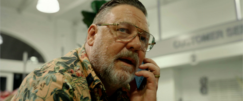В «Территории зла» роли распределены идеально согласно возрасту и умениям: пока молодой красавец Хемсворт бегает по джунглям, теряя по дороге одежду и оружие, Кроу показывает мастер-класс, практически не вставая со стула. В самом напряженном моменте фильма он очень смешно ищет редкий сыр в продуктовом и сверяет список покупок по телефону с четвертой по счету женой, которая к тому же на сносях. Режиссер Юбэнк шутит, что если вдруг ему дадут снять сиквел, он назовет его «Территория отца».