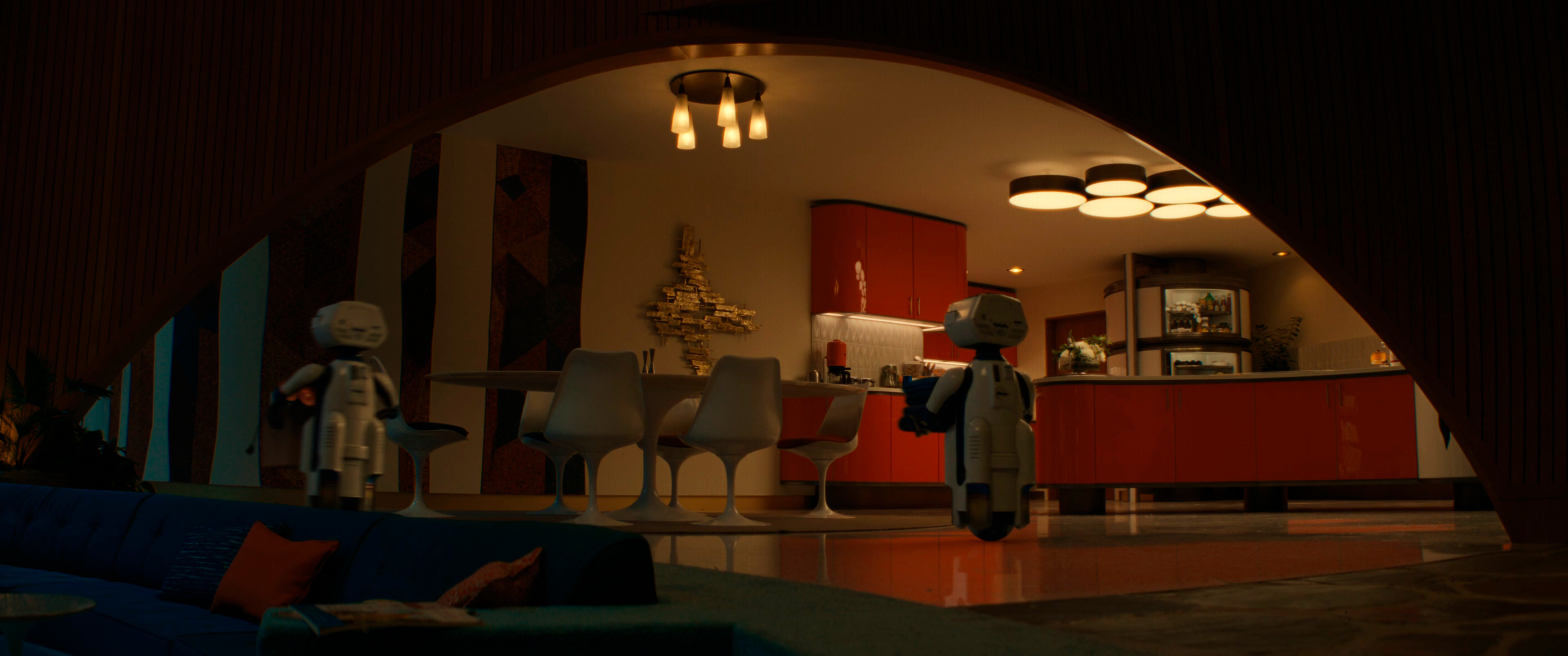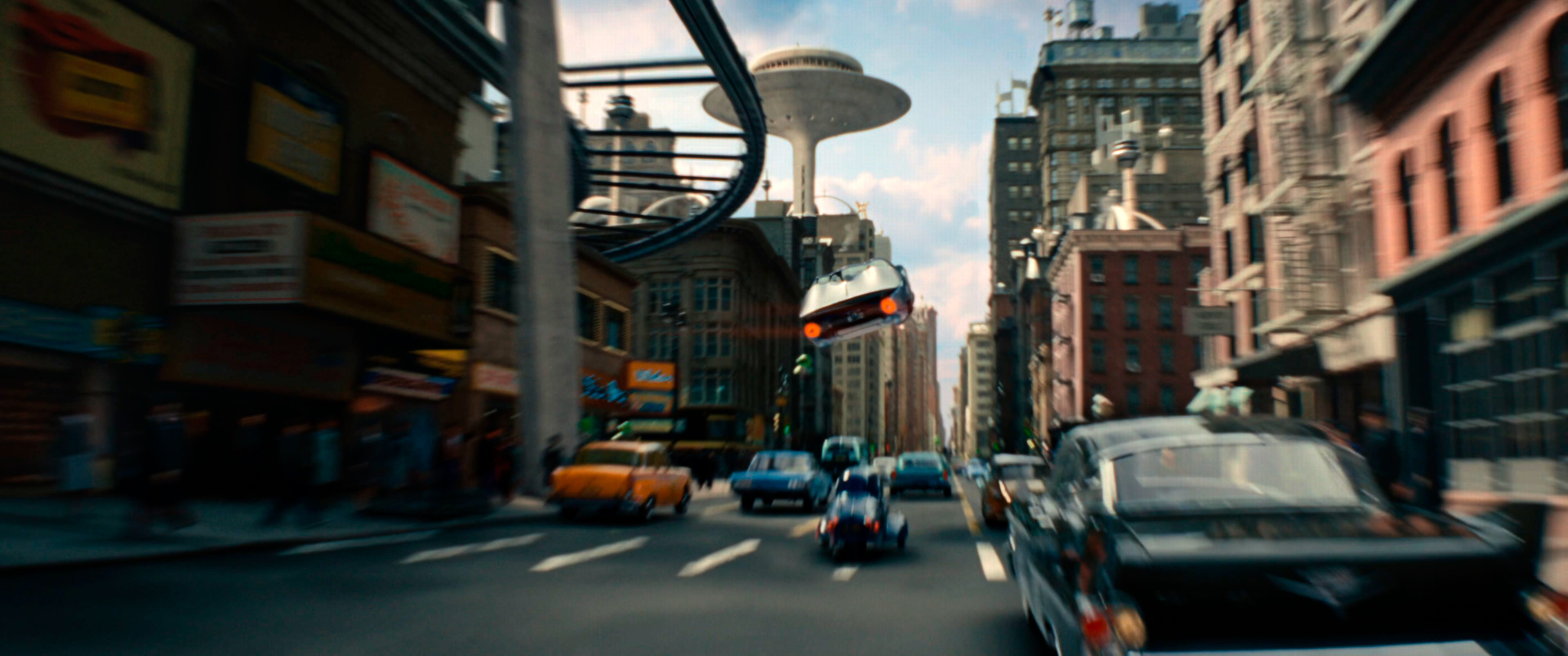 Мэтт Шакман и его команда построили такой ретрофутуристичный Нью-Йорк шестидесятых годов, воссозданный с большим вниманием к деталям: автомобили, интерьеры, одежда, техника, компьютеры, смешной робот Г.Е.Р.Б.И. - это смотрится просто изумительно. Но при просмотре одновременно возникает впечатление, что это очень старое кино, поставленное в стилистике если не шестидесятых, то восьмидесятых.