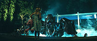 про зрелищность и эффекты - согласен с Shaas. в большинстве батальных сцен разобрать что-либо сложно. уничтожение базы: на чОрном фоне ходит какая-то... ерундень и пуляет. взрывы реальных объектов хороши, но формеры - не очень. впрочем, детишкам нравится. и формеры, и "шуточки".