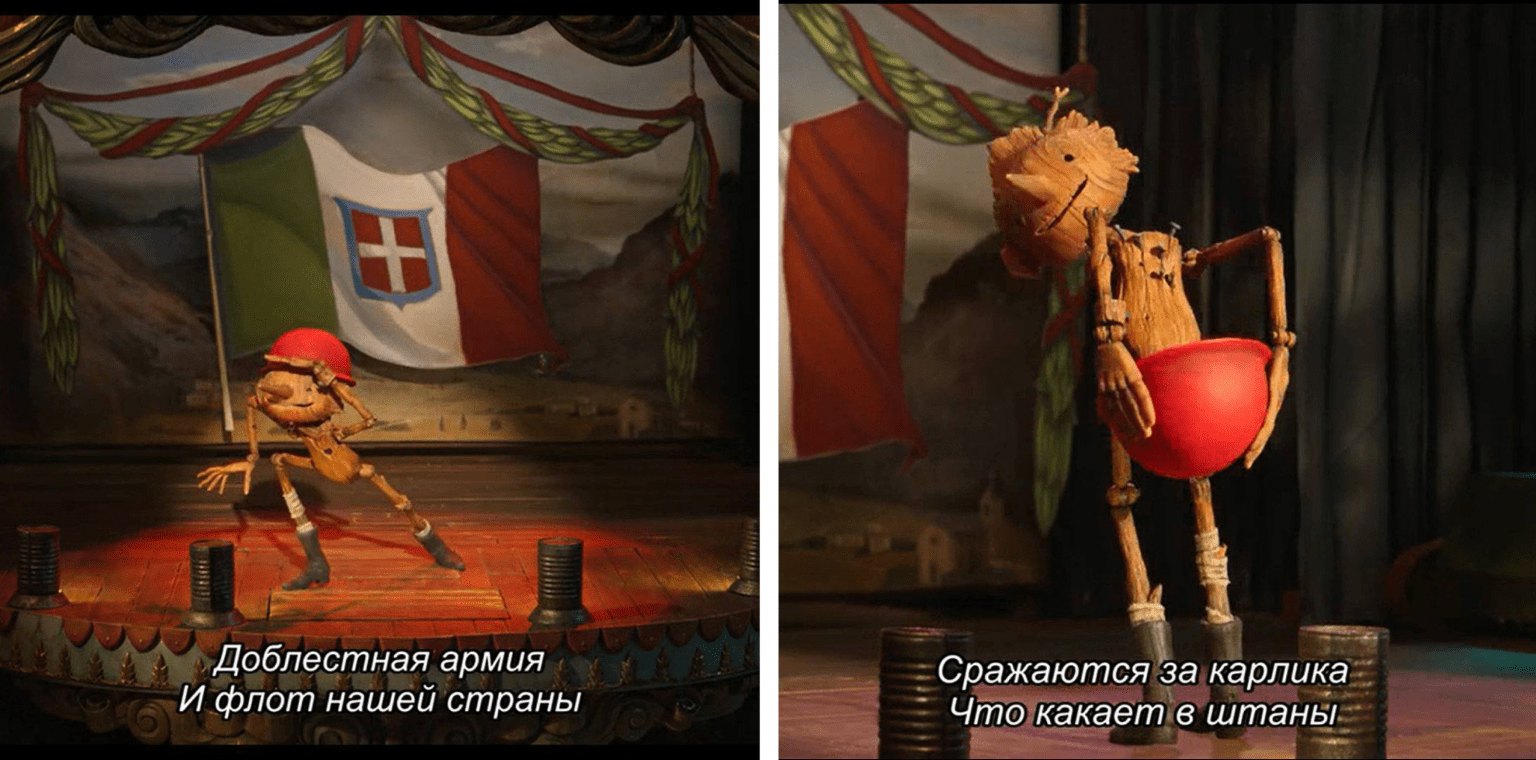 А вот у Г. дель Торо получился просто отличный анимационный фильм, особенно со всеми этими сатирическими отсылками к дуче, тогдашним итальянским имперцам, ура-патриотизму и милитаризму, балилле и прочему позорному прошлому Италии, да еще и с мощнейшим антивоенным посылом.