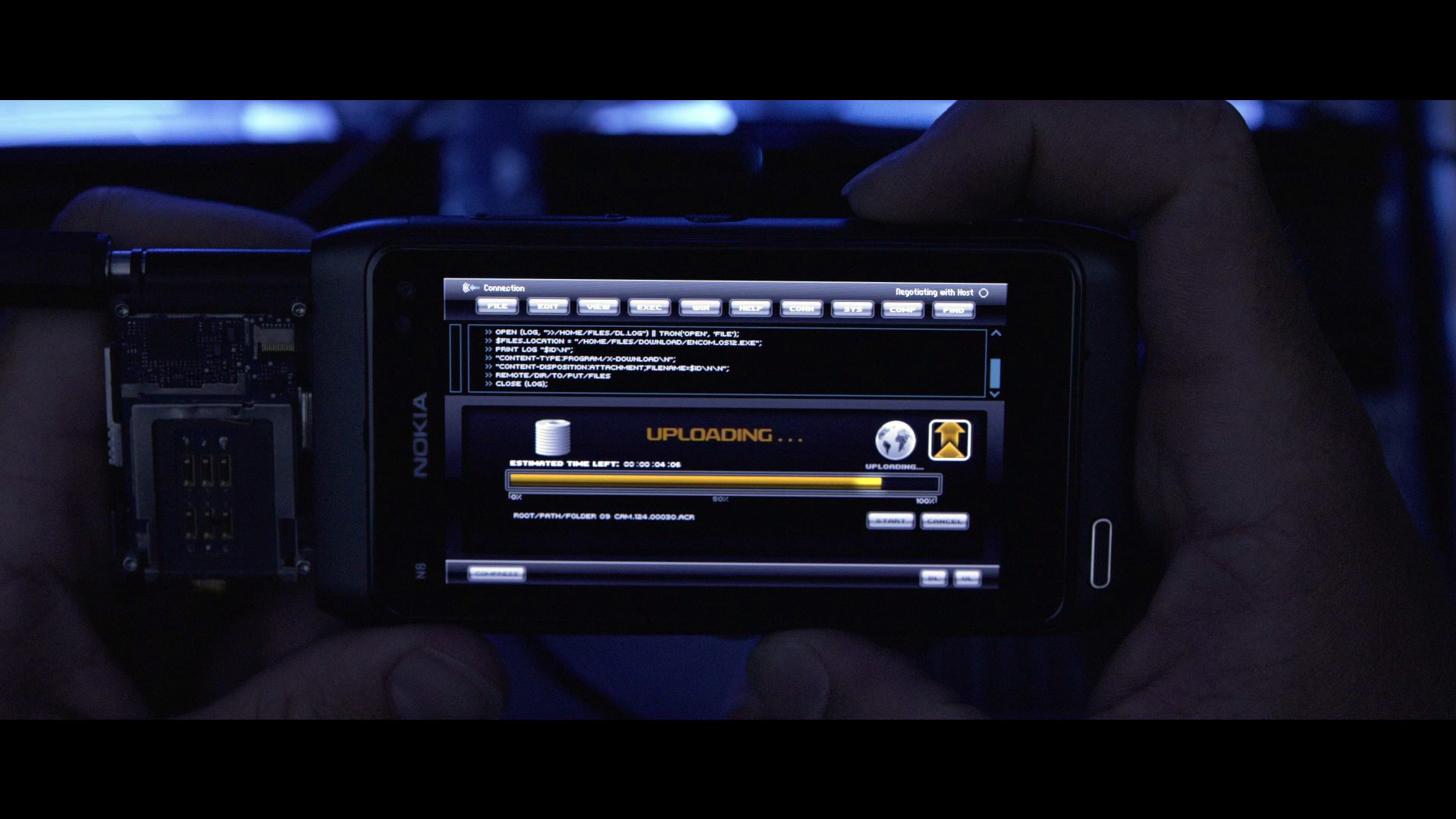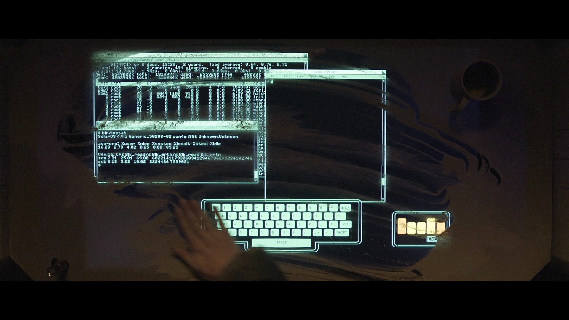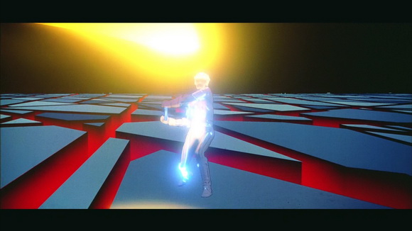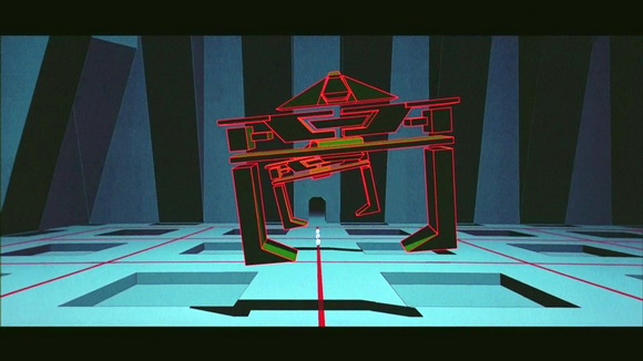 Сэм, вспомнив детство босоногое, по привычке пытается получить там рутовые права. Срабатывает защита, загорается старый боевой лазер, который бьет прямо в затылок Сэму, и парень вдруг оказывается в Системе - виртуальном мире, который в свое время конструировал его отец.