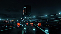 Также хороша музыка - ее делал парижский электронный дуэт Daft Punk, которые к тому же снялись в этом фильме в роли диджеев в клубе "Конец строки". Музыка особенно хороша тем, что очень гармонично подобрана не только к определенным эпизодам картины, но и к движению персонажей.
