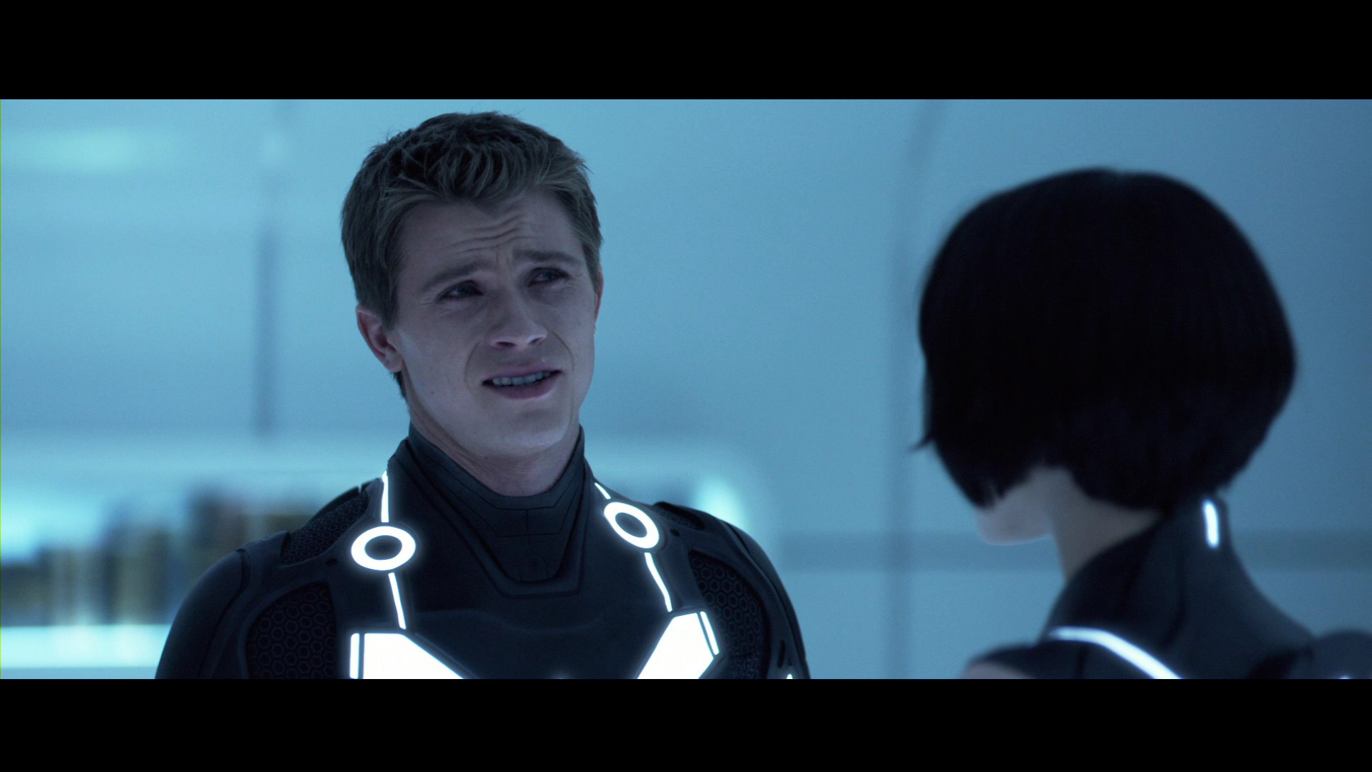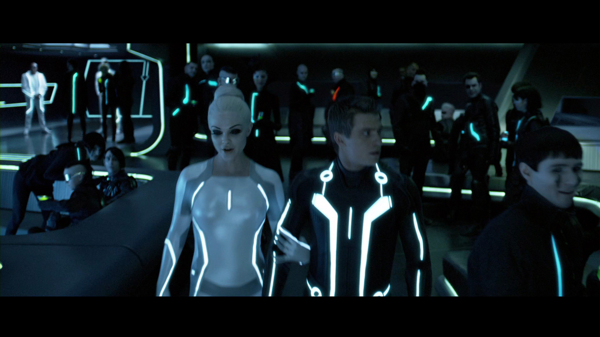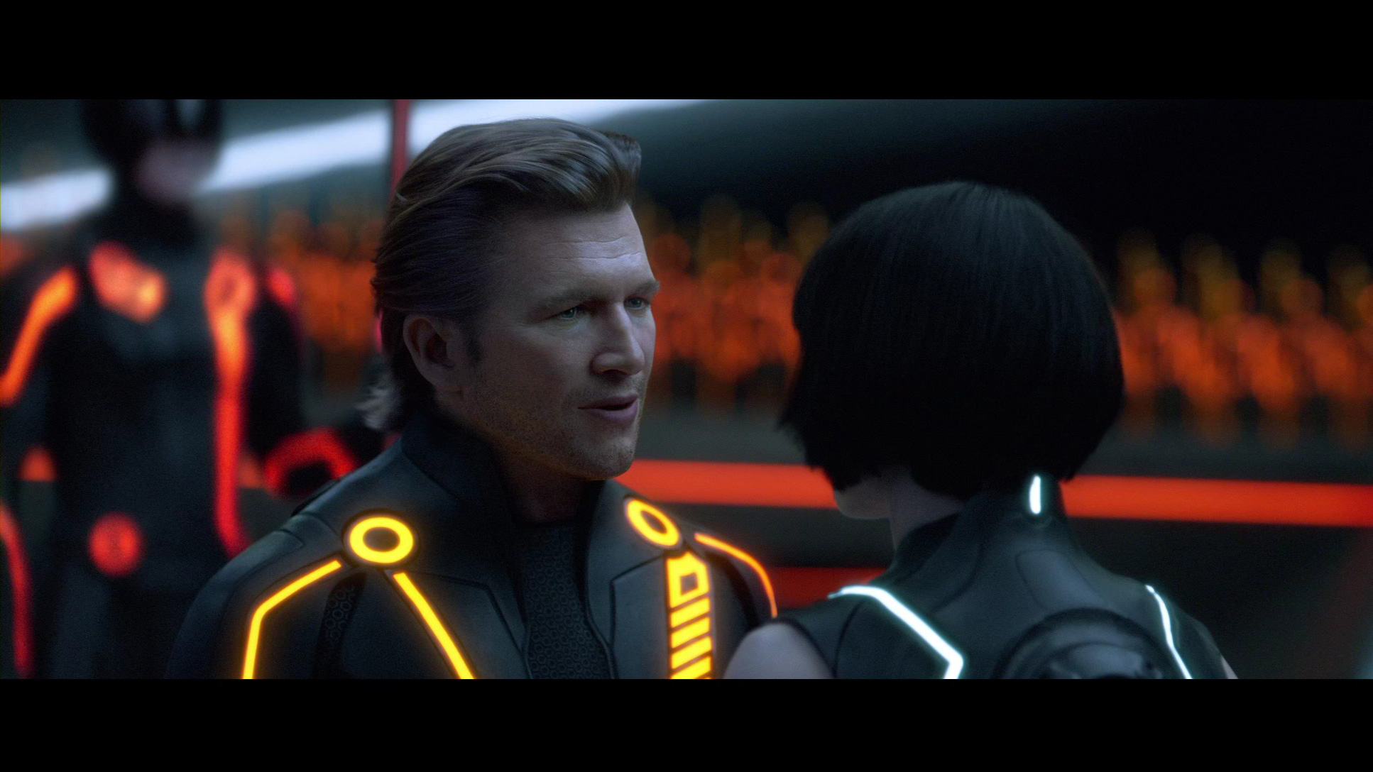 Давненько такого разочарования не было. Во-первых, не понимаю зачем вообще тут 3D. Моменты, где 3D вообще заметно, помжно пересчитать по пальцам. Во-вторых, разрекламированное омоложение Бриджеса в виде Клу, оказалось профанацией. Лицевая анимация ни к черту. Да и на молодого Бриджеса Клу действительно слабо похож. Скорее уж на современного нам, только чисто выбритого, с закрашенной сединой и после подтяжки лица. В-третьих, Оливия Уайлд. Хоть убейте, не понимаю, за что ее считают хорошей актрисой. Да, она в Хаусе более-менее ко двору пришлась. Но там ведь какие мастера рядом играют. Хью Лори и с какой нибудь лизой боярской может сыграть хоть Ромео и Джульетту. А здесь Оливка совсем снулая. Парнишка-главгерой тоже не впечатлил. Ну да, ищет папу, ну находит, ну уговаривает. Обламывается и топает геройствовать. Как то это все без души, неинтересно. Впрочем, с такими диалогами и неудивительно. А еще меня сильно угнетала на протяжении просмотра цветовая гамма. Кроме оранженых, красных и синих полос на элементах все остальное практически черное. Да, стильно, но слишком однообразно.