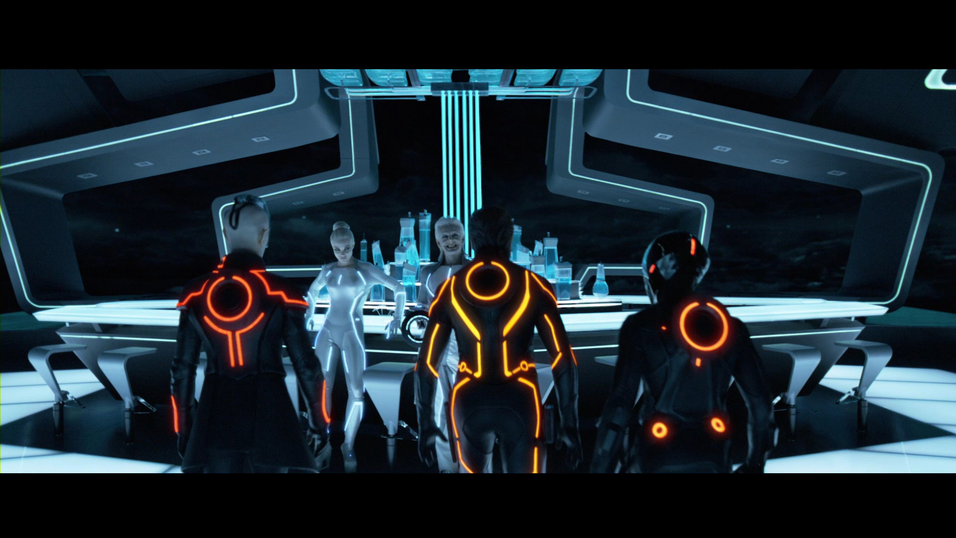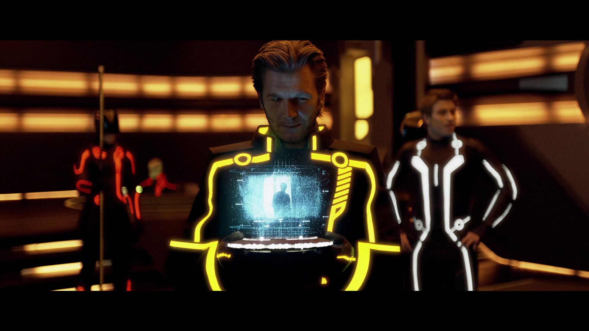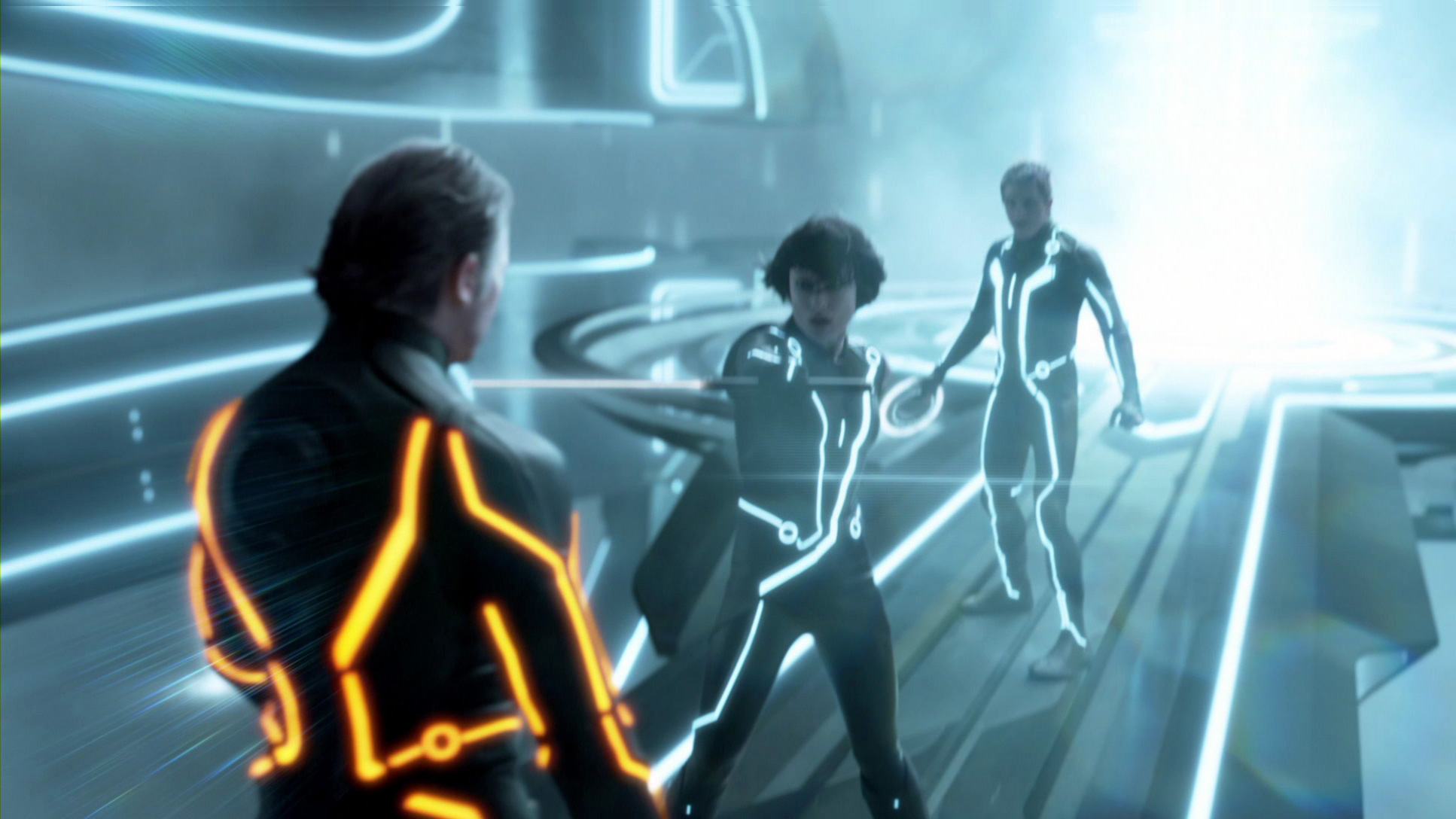 Давненько такого разочарования не было. Во-первых, не понимаю зачем вообще тут 3D. Моменты, где 3D вообще заметно, помжно пересчитать по пальцам. Во-вторых, разрекламированное омоложение Бриджеса в виде Клу, оказалось профанацией. Лицевая анимация ни к черту. Да и на молодого Бриджеса Клу действительно слабо похож. Скорее уж на современного нам, только чисто выбритого, с закрашенной сединой и после подтяжки лица. В-третьих, Оливия Уайлд. Хоть убейте, не понимаю, за что ее считают хорошей актрисой. Да, она в Хаусе более-менее ко двору пришлась. Но там ведь какие мастера рядом играют. Хью Лори и с какой нибудь лизой боярской может сыграть хоть Ромео и Джульетту. А здесь Оливка совсем снулая. Парнишка-главгерой тоже не впечатлил. Ну да, ищет папу, ну находит, ну уговаривает. Обламывается и топает геройствовать. Как то это все без души, неинтересно. Впрочем, с такими диалогами и неудивительно. А еще меня сильно угнетала на протяжении просмотра цветовая гамма. Кроме оранженых, красных и синих полос на элементах все остальное практически черное. Да, стильно, но слишком однообразно.