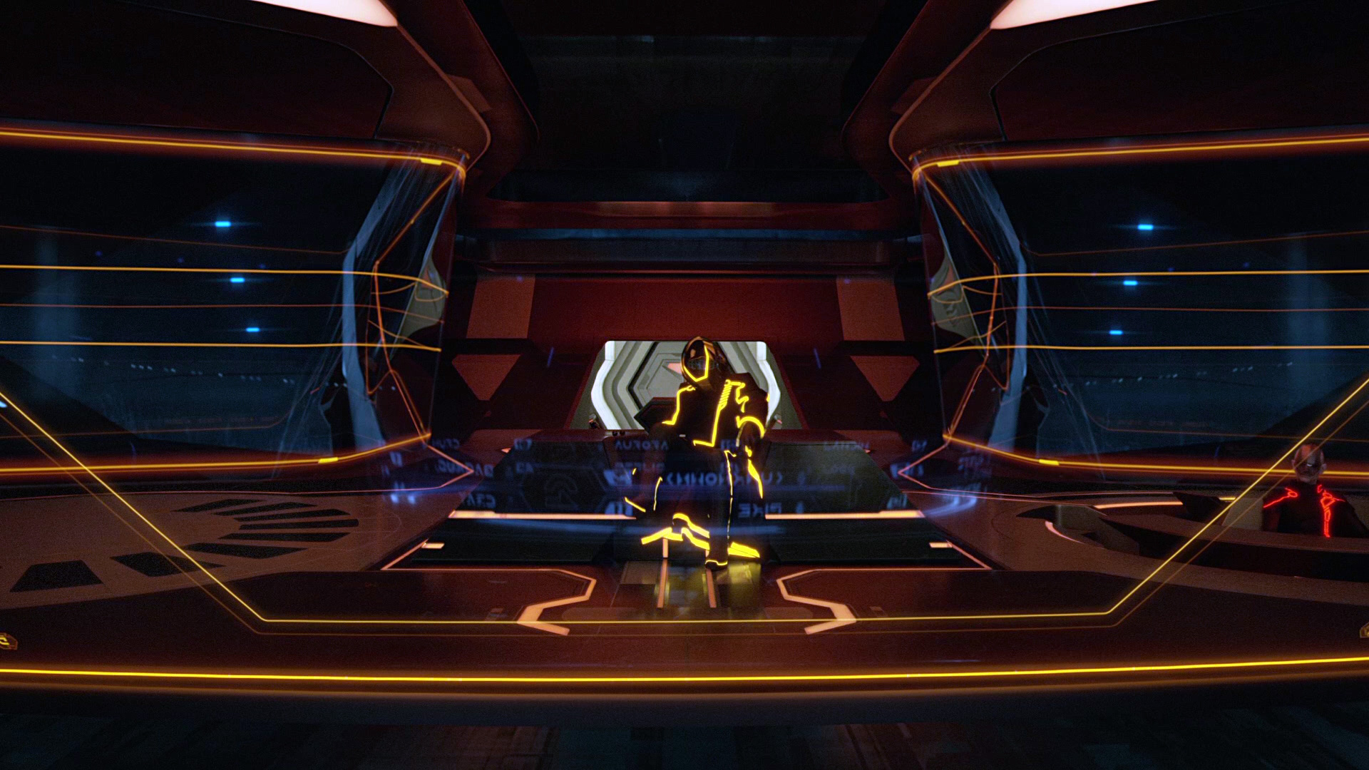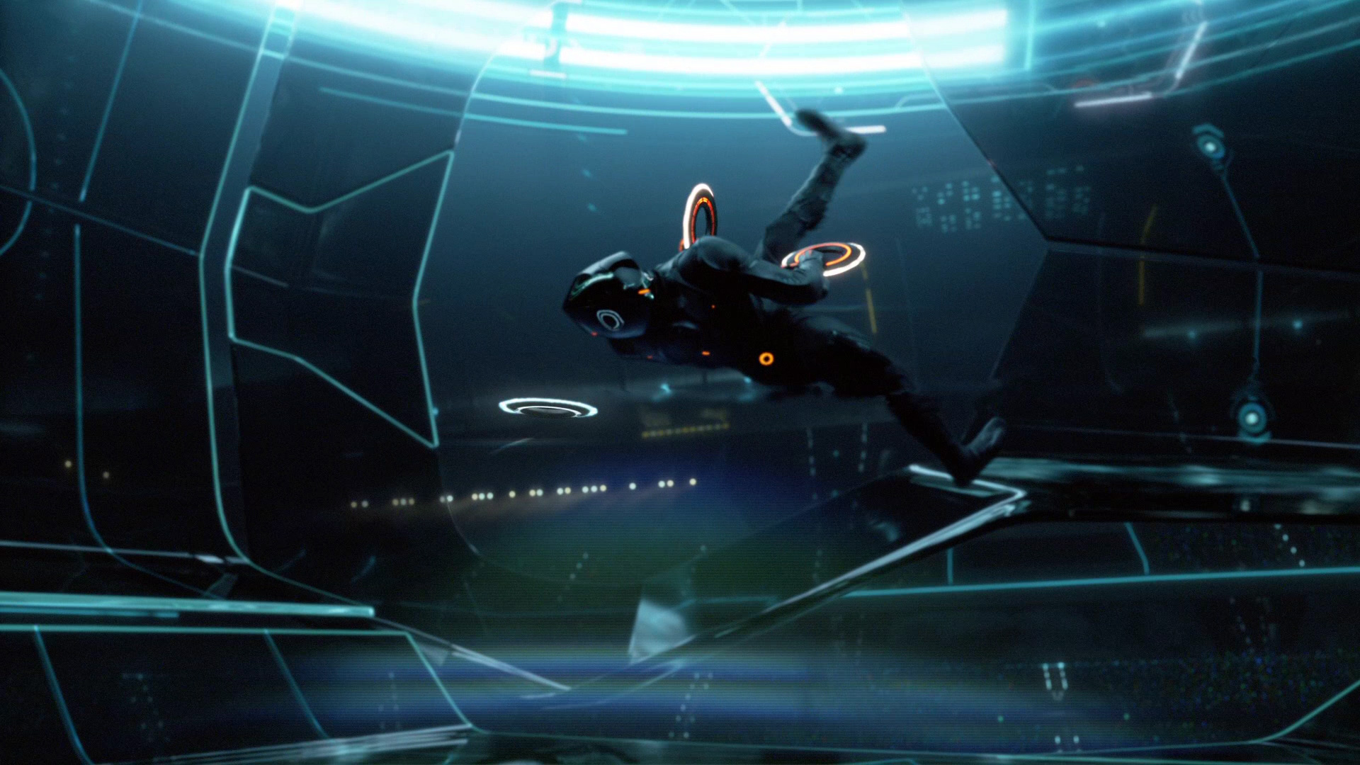 Сэм приходит в этот покрытый пылью и запустением бывший дворец наслаждений и обнаруживает там потайную комнатку, в которой его отец неистово программировал. Старый добрый отцовский компьютер еще умеет очень быстро складывать и вычитать (как известно, любой компьютер ничего другого делать и не умеет), и Сэм, вспомнив детство босоногое, по привычке пытается получить там рутовые права. Срабатывает защита, загорается старый боевой лазер, который бьет прямо в затылок Сэму, и парень вдруг оказывается в Системе - виртуальном мире, который в свое время конструировал его отец.