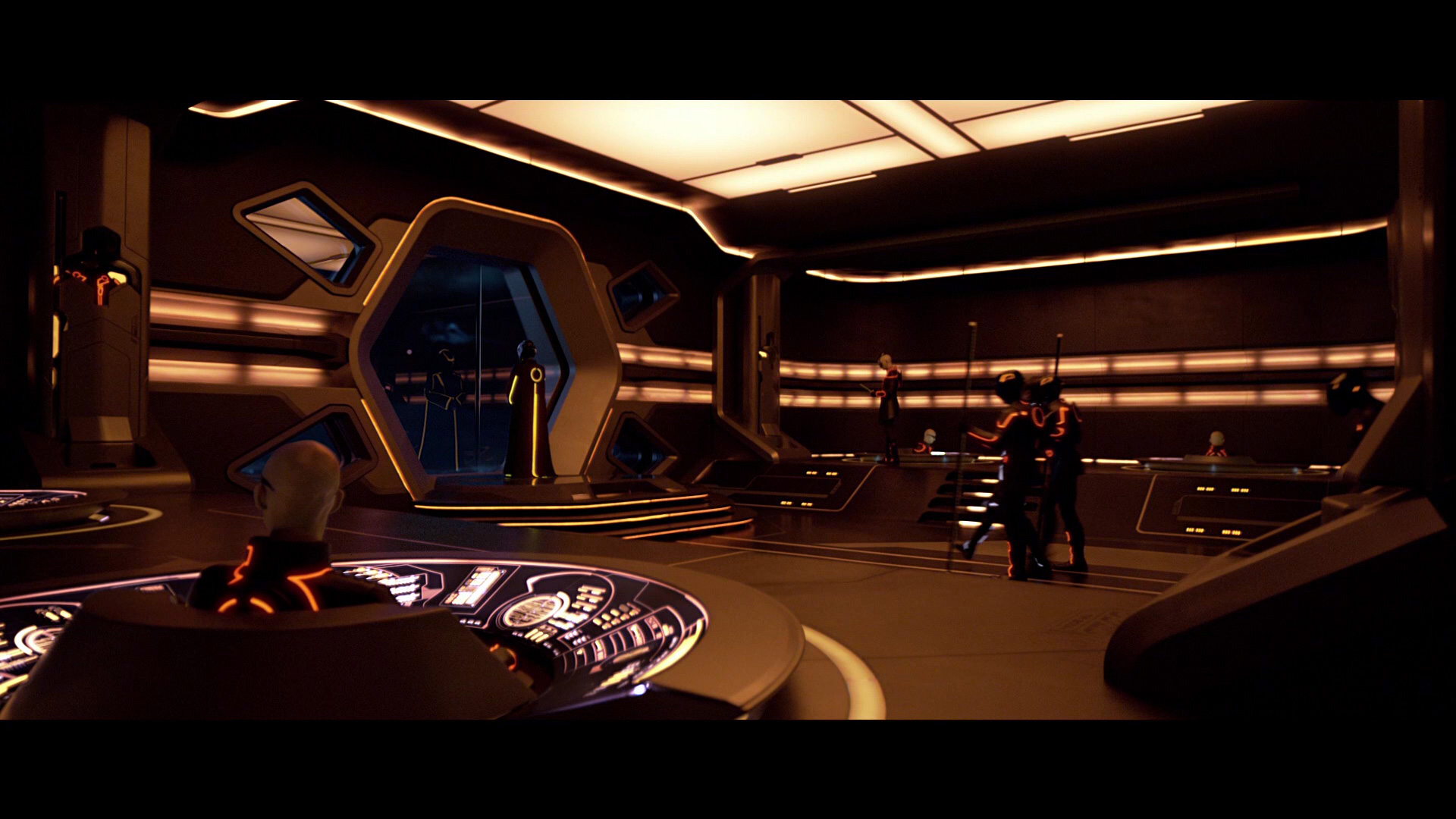 С визуальной точки зрения все действительно сделано на очень и очень высоком уровне. Даже высочайшем. Оно, конечно, дыхание не захватывало, как на просмотре "Аватара", но тем не менее впечатляло сильно. Причем тут дело не только в компьютерной графике и соответствующем экшене, но и еще в работе художников и дизайнеров. Интерьеры, эти лифты со светящимися полами, корабли, арена сражений - это очень и очень круто, просто снимаю шляпу.