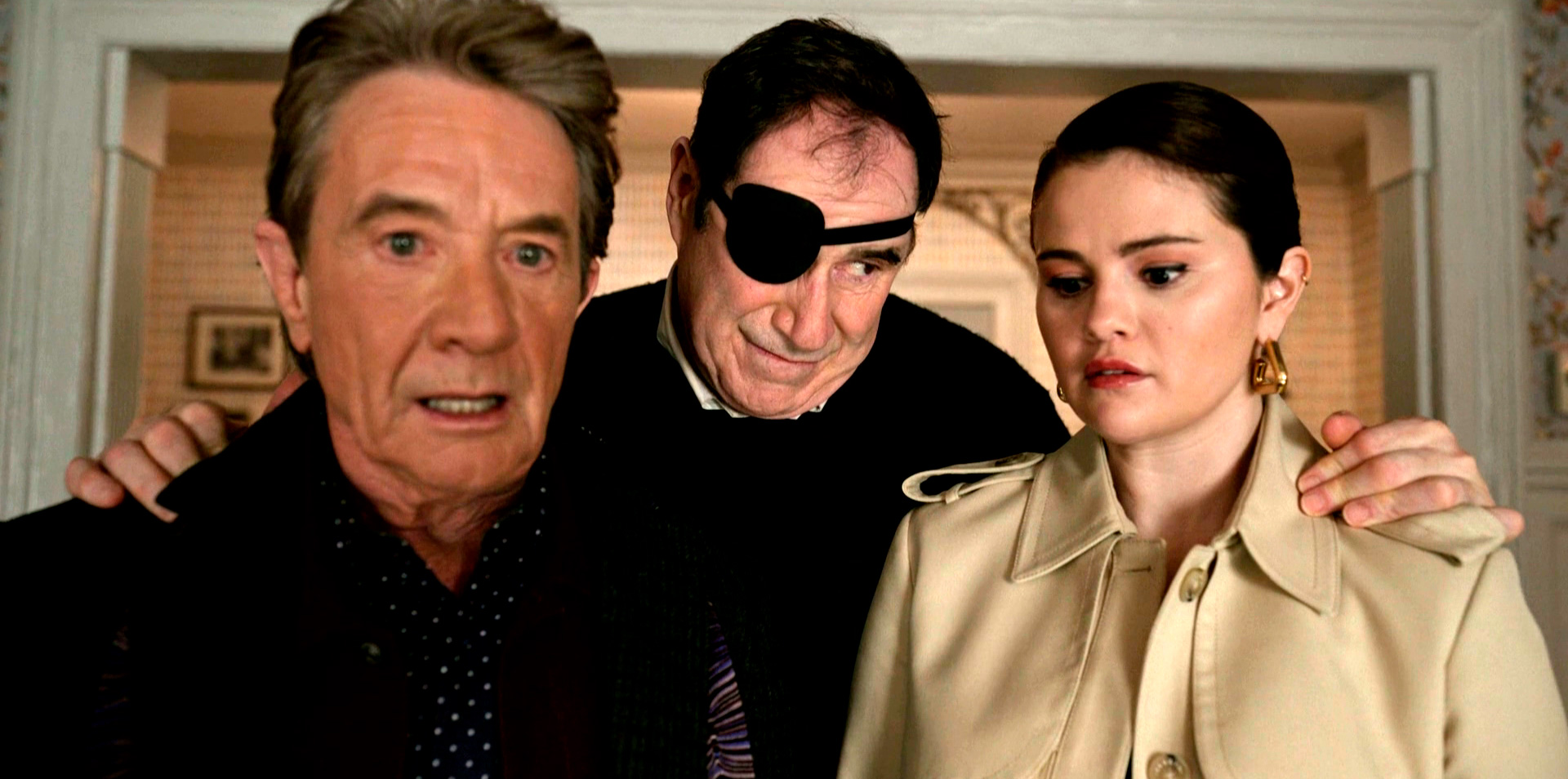 Как известно, третий сезон заканчивался убийством в апартаментах Чарльза его каскадерши и давней подруги Сэз Патаки (Джейн Линч). Троица как раз сетовала на то, что для нового сезона их подкаста нужен свеженький труп в Арконии, но Чарльз никак не ожидал, что это будет кто-то настолько хорошо знакомый.