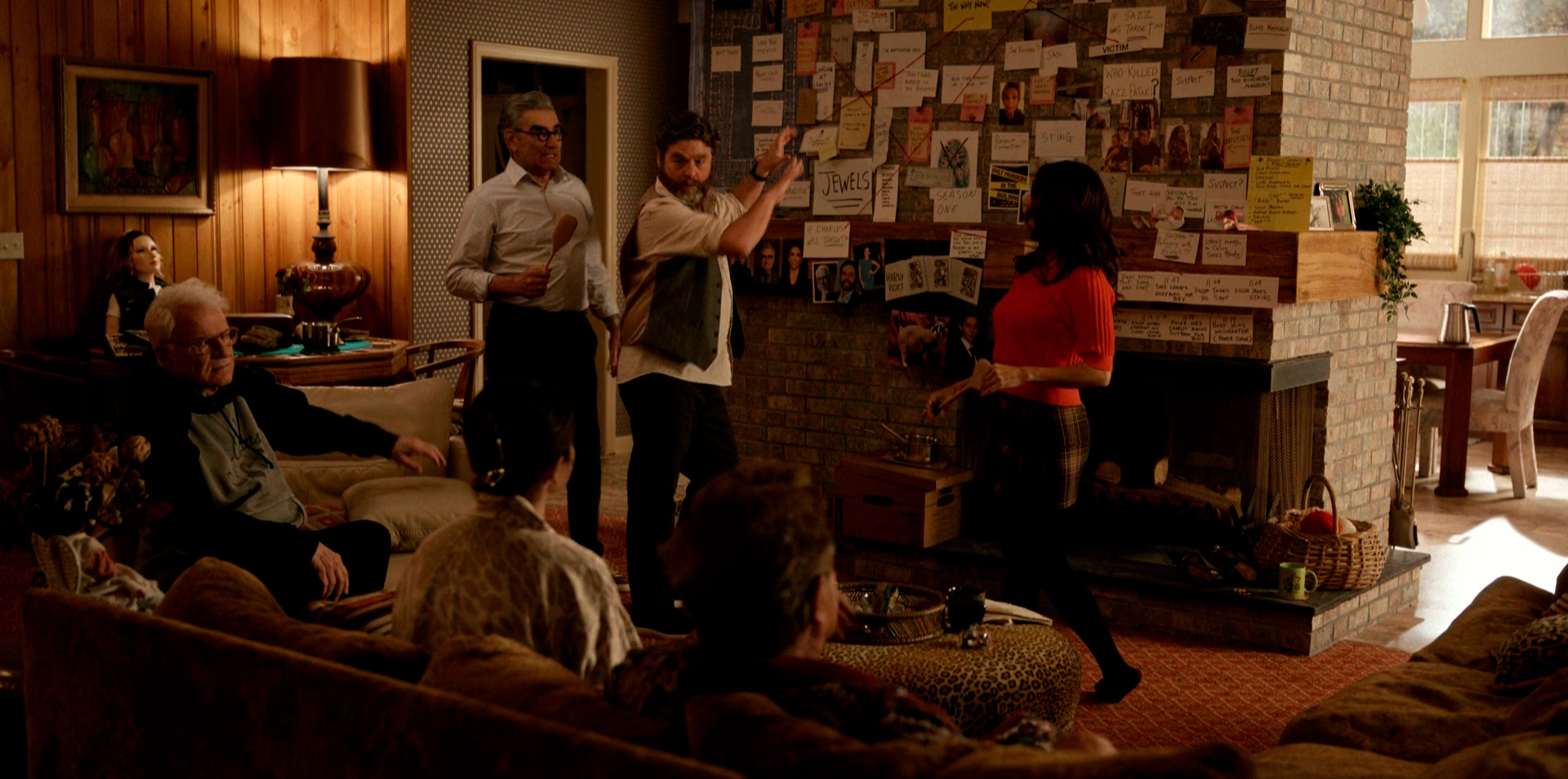 Ещё в первом сезоне решая чем заняться один из героев предлагает расследовать загадочное убийство в парке. На что другой отвечает: "Нет, только убийства в здании".