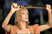 P.S. Меч Хаттори Ханзо, принадлежащий Бадду, - это тот же самый меч, которым Буч зарубил владельца магазина в "Криминальном чтиве". Это подтвердил сам Тарантино. Впрочем, в обеих частях "Убить Билла" понапихано такое количество цитат и аллюзий к различным фильмам самого Тарантино и других режиссеров, что одно их перечисление займет несколько страниц. Так что перечислять не будем. Вы просто посмотрите этот фильм - все сами увидите...
