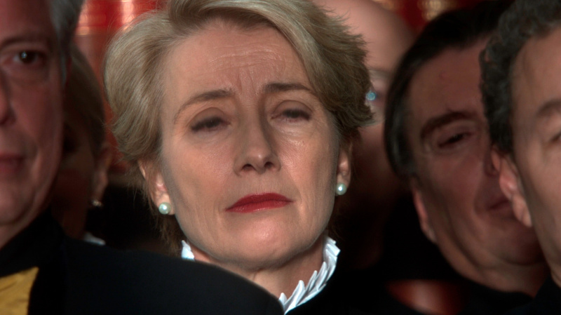 Судья Мэй всегда безукоризненно одета, она всегда, что называется, застегнута на все пуговицы, она практически не демонстрирует никаких эмоций, потому что этого требует ее работа: Королевский суд - это прежде всего Закон, а не мораль или эмоции. Судья принимает решение, руководствуясь только положениями закона, он не имеет права руководствоваться чем-то еще.