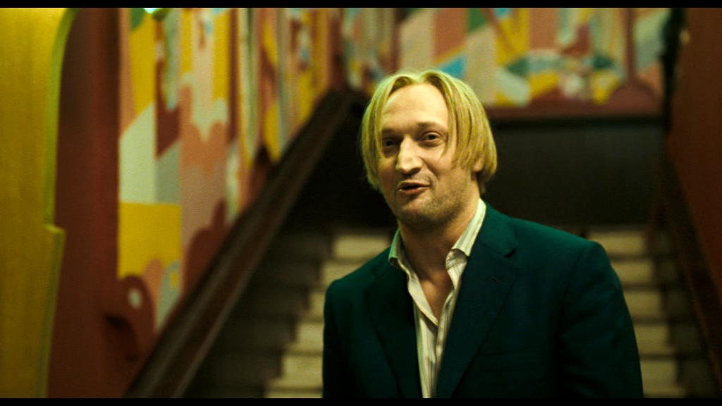 Гоша Куценко здесь совершенно иной, нежели в "Дикарях", где он демонстрировал философскую отстраненность - там персонаж был такой. В "Упражнениях в прекрасном" Гоша играет на некотором театральном надрыве и своего персонажа показывает как бы со стороны - вероятно, чтобы зрители не путали актера с его лирическим героем, хотя понятно, что у самого Куценко с Калининым очень много общего.