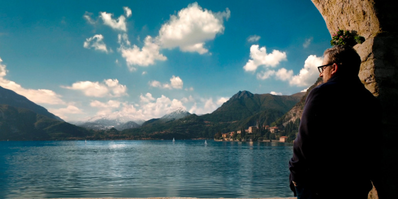 Ну а виновник всего этого скандала Митч Кесслер (Стив Карелл) сбежал от всех в Италию, где, как он считает, о нем никто не знает. Он в полном одиночестве живет в роскошном особняке, построенном на берегу озера Комо, пьет, пытается разобраться сам в себе и только изредка делает вылазки в ближайший городок, чтобы выпить кофе в кафешке. В какой-то момент его узнает американская туристка-феминистка, устраивает скандал, но за Митча заступается итальянка Паола (Валерия Голино). Паола - никому не известная журналистка-документалистка, и Митч - то ли от скуки, то ли из чувства благодарности - начинает помогать Паоле работать над интервью и репортажами. И он даже соглашается на то, чтобы Паола взяла интервью у него самого.
