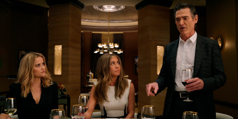 Однако, что интересно, с точки зрения бурных переживаний персонаж Дженнифер Энистон персонажу Риз Уизерспун не только не уступает, но и заметно ее превосходит. Здесь мы видим совсем другую Алекс, не такую, как в первом сезоне. Она сломлена, она подавлена, она страдает морально и физически. Моральные страдания ей доставляет вся эта история, частью которой она вольно или невольно была, ее очень страшит выход книги этой чертовой Мэгги Бренер, где непонятно, какие сведения будут предъявлены общественности, также ее мучают почти постоянные боли в спине - все это приводит Алекс к нервному срыву.
