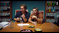 А тут - ну, хорошо же играют (кроме, простите, Витторгана). И тексты хорошие. И задумка. Но - как у Льва Николаевича - одна мысль размазана на три страницы, и ведь нахер не пошлешь, хорошие же актеры. Тяжело, в общем, смотрится, особенно после предыдущих вполне динамичных фильмов (ну разве что про кроликов слегка тягомотно, но там хотя бы одна серия). Потом, несколько напрягает какая-то сортирная тема - дело это конечно жизненное, но только зачем ее пихать в первую же серию? Настолько вот требовалось показать писающего персонажа Бараца, которому требуется еще одновременно и вникать в метания режиссера? Ну, может я придираюсь конечно и в жизни оно еще и не так бывает, но на экране при все том же эпитете "хорошие актеры" как-то мало уместно, да еще и регулярно.