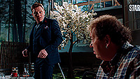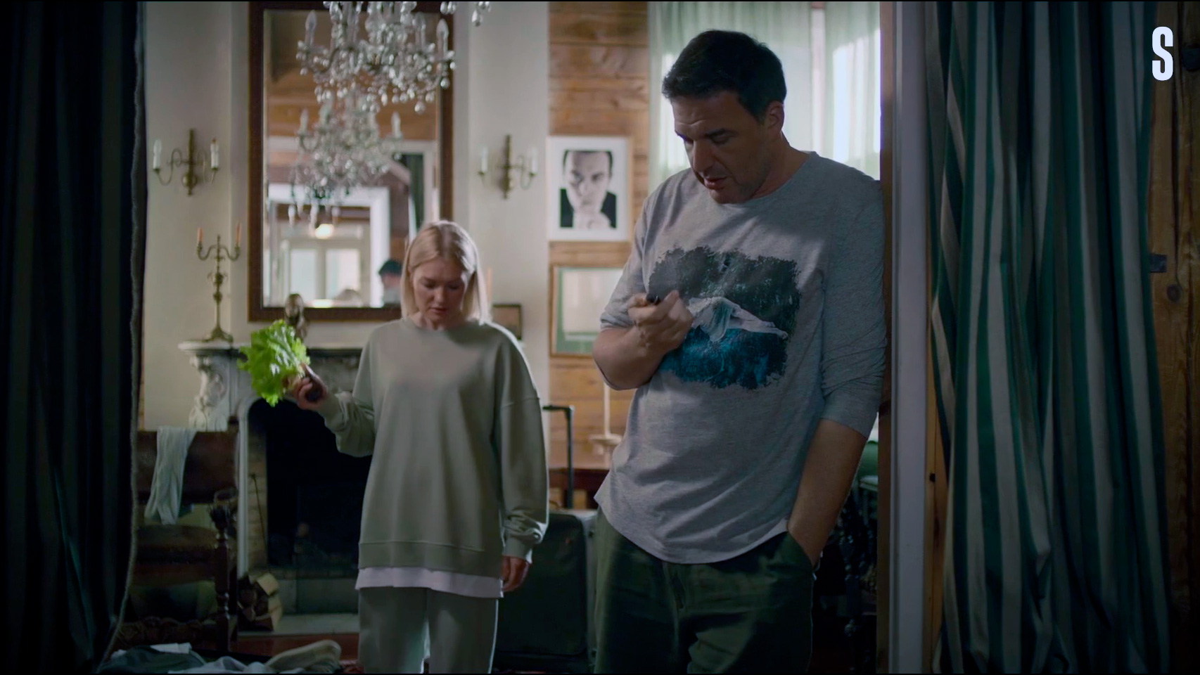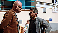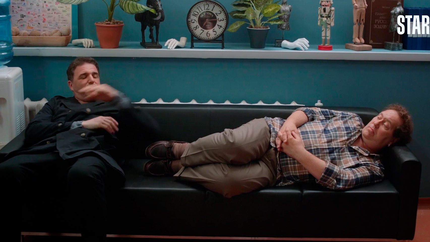Леонид Барац и Александр Демидов тут играли сценаристов Кирилла и Гришу. У Бараца роль совсем небольшая, а вот Гриша у Демидова находится в жутком психологическом состоянии после ухода жены, и Гриша от этого никак не может прийти в себя. Я поначалу думал, когда увидел, как Гриша изводит окружающих своими бесконечными жалобами, что это будет решено в эдаком комедийном ключе: ну чего он, действительно, все время ноет, достал уже!
