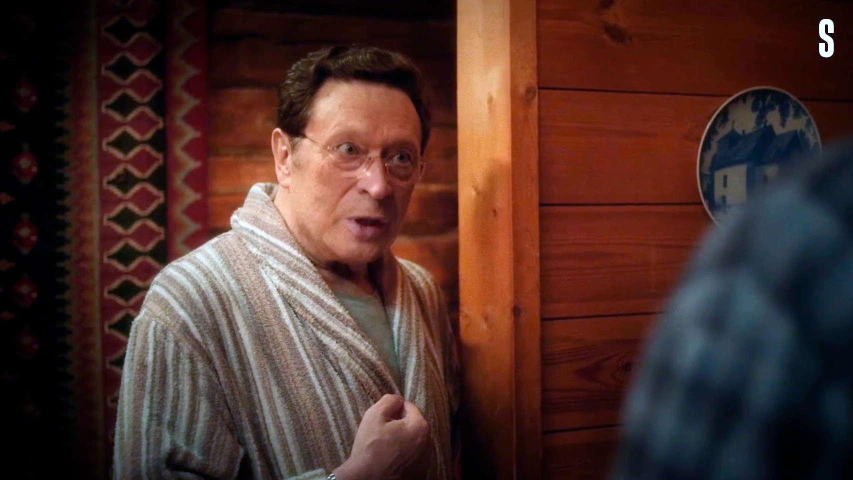 Запившего актера Калмыкова изобразил Павел Майков. Я его плохо знаю, с ним ничего не видел. Сыграл, в общем, именно так, как и требовалось по роли - Калмыков страшно истерил в эпизоде запоя (и это по сценарию так и полагалось), ну и там как раз была интересная отсылка: Калмыков в пьяном угаре зачитывал монолог Хлопуши из поэмы "Пугачёв" абсолютно с интонациями Владимира Высоцкого (и хорошо зачитывал), это одна из самых известных театральных ролей Высоцкого.