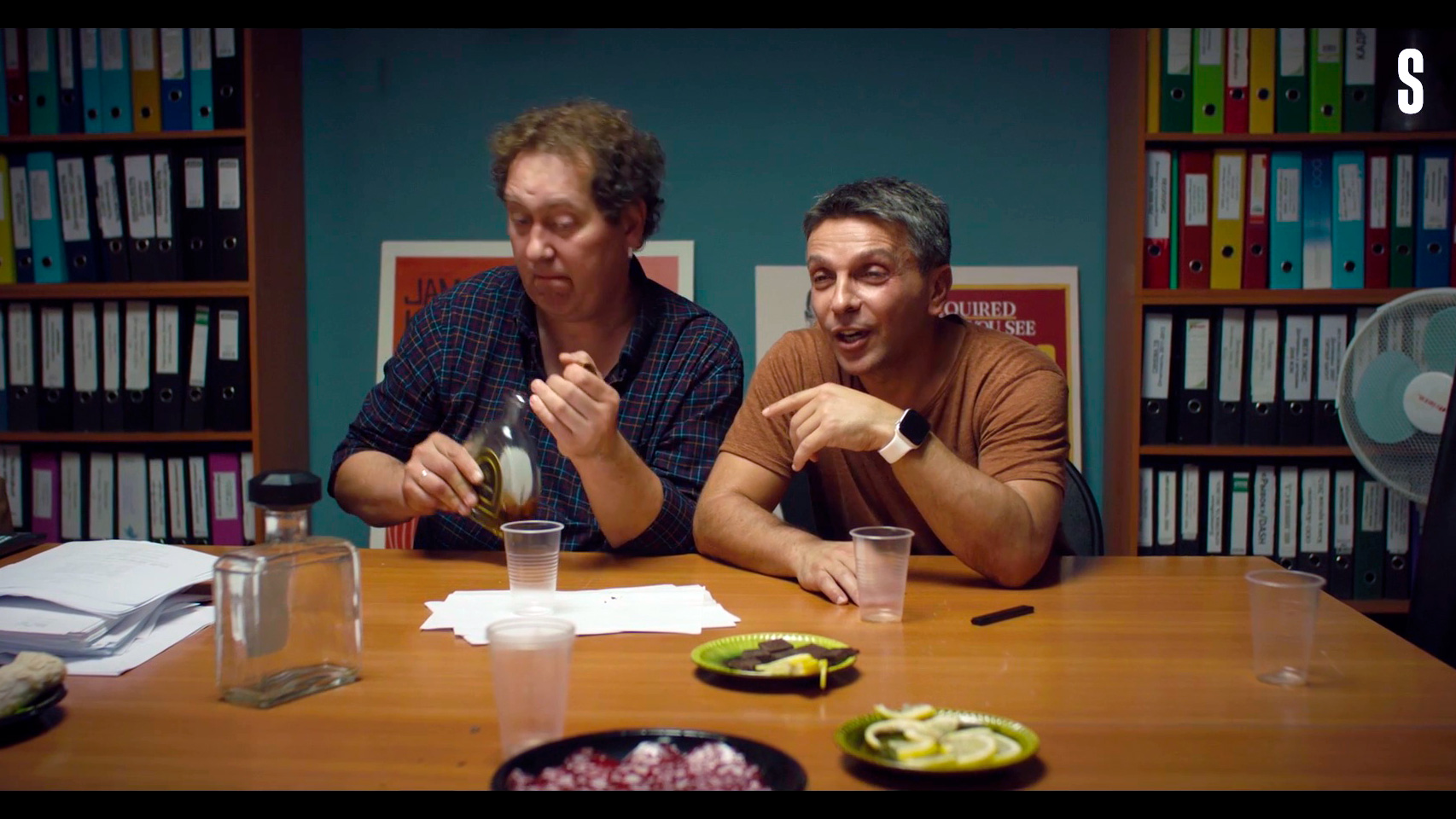 Начинается сериал с так называемой "шапки" - банкета по случаю завершения съемок нового фильма. Это традиционное мероприятие, которое проводится, для того чтобы, во-первых, отметить окончание длительного и утомительного процесса, во-вторых, отдохнуть и расслабиться, ну и, в-третьих, выпустить пар и выразить накопившиеся во время съемок эмоции. Собственно, именно этим собравшиеся и занимаются: выпивают, вспоминают какие-то старые обиды, рассказывают байки, ссорятся и мирятся.