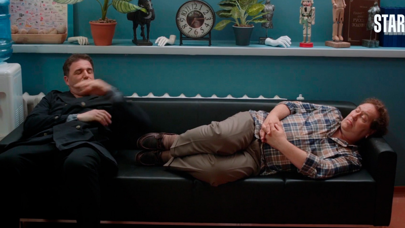 Парадокс. Но первое, что мне напомнил этот сериал - это завязка фильма Юрия Быкова 'Сторож'. Герои уже сделали все свои выборы. Они больше ничем не могут помочь сюжету и просто рефлексируют на фоне очень уставшего юмора. С горечью и грустью вынужден признать, что последний на сегодня проект 'Квартетовцев', как и последний проект Быкова - очень уставшие. Каждые 10 минут ловишь себя на мысли, что в диалогах с тобой говорят не герои, а сценаристы. Потому что в жизни герои так и в таких ситуациях - не говорят.