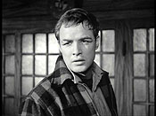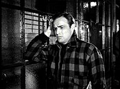 Самое главное - это Марлон Брандо. Еще совсем молодой, еще совсем красавчик, но главное - уже отличный актер. Во время просмотра, конечно, поначалу мешает достаточно непривычная, излишне "театрализованная" актерская манера (характерная для кино тех времен), но потом к ней быстро привыкаешь. Брандо играет парня, находящегося на распутье. Ему нужно выбрать, с кем он будет. С бандитами - он потеряет уважение к самому себе и потеряет девушку. С портовыми рабочими - это смертельный риск, потому что он идет против людей, не останавливающихся ни перед чем. И Брандо четко показывает, как у Терри идет процесс принятия решения - без какого-то пафоса, без переигрывания. Причем здесь очень хорошо видна разница между актерскими уровнями - например, в сценах с Терри и Эдди, в сценах в порту. Брандо играет превосходно. Он уже тогда был блестящим актером. В диалогах с Эдди Терри - абсолютно живой и естественный: пижонит, хорохорится, боится, негодует. А Ева Мария Сейнт играет так, как будто показывает свою Эдди со стороны - пафосно и надрывно. Тогда так играли. Но Брандо уже тогда играл совершенно не так. Впрочем, "Оскара" за роль получил не только Брандо, но и Ева Мария Сейнт...