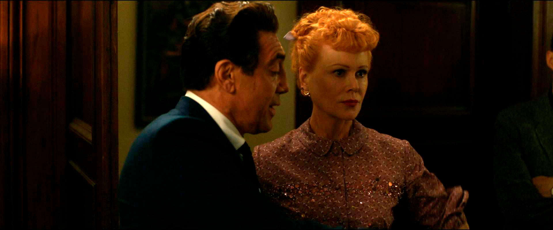 Хавьер Бардем - великолепный совершенно! Вот он - чистый и совершенно незамутненный восторг! Море обаяния, прекрасно показанные различные аспекты очень непростых взаимоотношений неистового кубинца с небольшой атомной бомбой по имени Люсиль Болл, одновременно хорошо видно, что при всем добродушии Деси - не тот человек, который будет под кем-то прогибаться. Совсем наоборот - именно Арнез может заставить прогнуться кого угодно, хотя он практически никогда не прибегает к явным угрозам. (Кстати, создателям картины уже навтыкали по поводу того, что кубинца в фильме играет испанец - ну как без этого...)